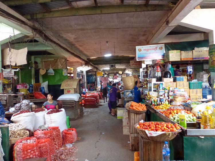Grossmarkt in Mawlamyaing. Hier wird alles in grösseren Mangen angeboten.