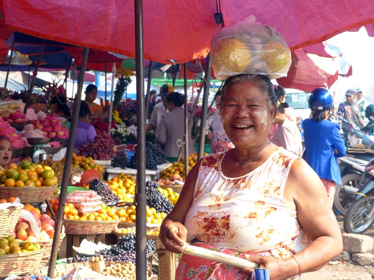 Markt in Mawlamyaing. Zufriedene Marktbesucherin.