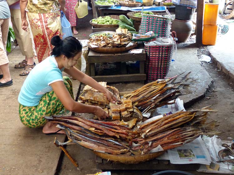 Markt in Mawlamyaing. Getrockneter Fisch.