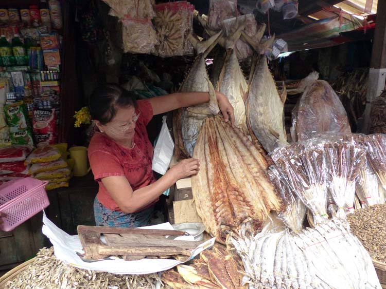 Markt von Dawei, dieser Markt ist vor allem für die getrockneten Fische bekannt.