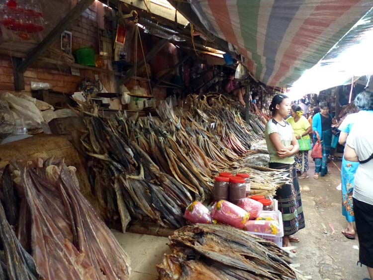 Markt von Dawei, dieser Markt ist vor allem für die getrockneten Fische bekannt.