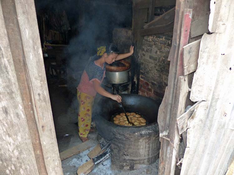 Markt von Dawei, zudem wird frisches Essen zubereitet.
