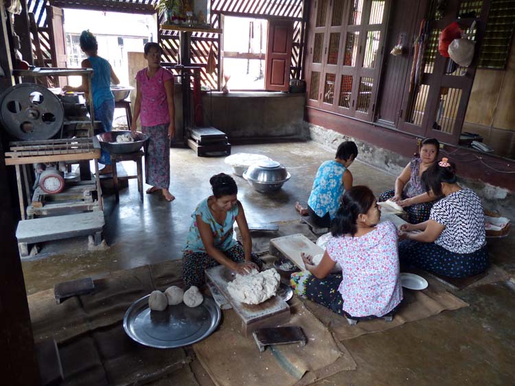Herstellung von Fisch-Cracker, hier wird die Masse geknetet.