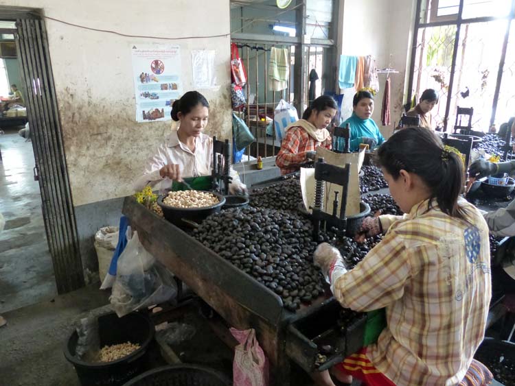 Cashewnüsse, hier wird mühsam jede Nuss einzeln aus der Schale geschält.
