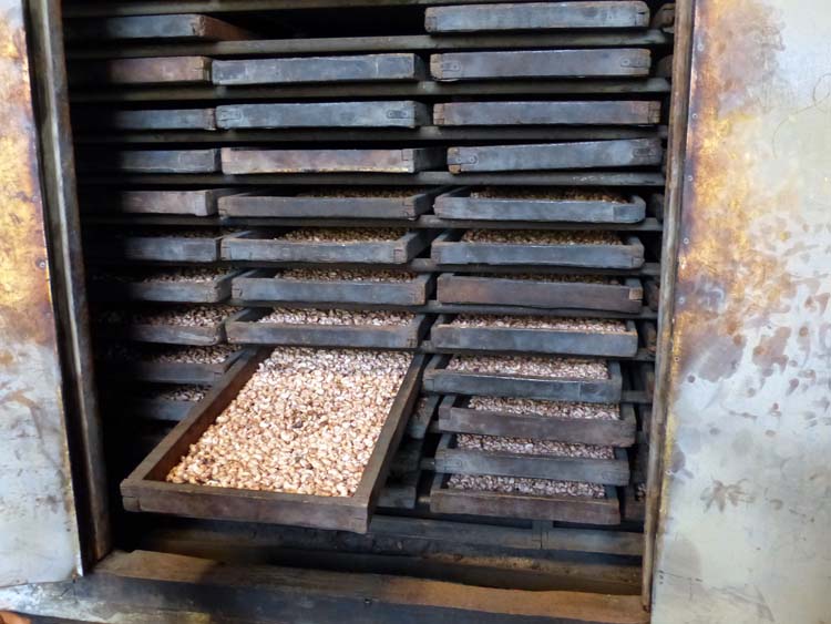 Cashewnüsse, im Ofen werden sie getrocknet.