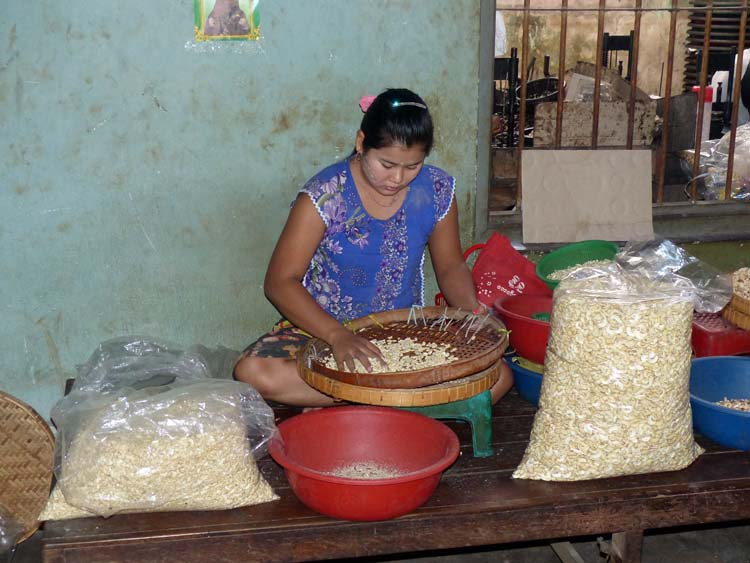 Cashewnüsse, am Schluss werden sie von Hand sortiert.