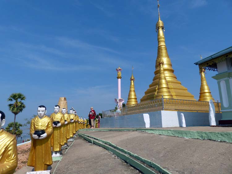 Shin Taung Pon Pagode, auch hier bewachen Mönche die Pagode.