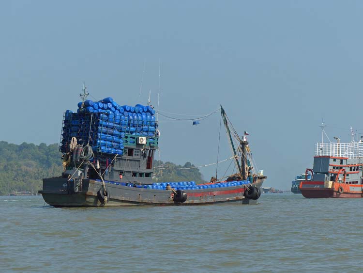 Bootsfahrt auf die Insel Pa Htaw Pa Htet, auch grössre Schiffe kommen in den Hafen