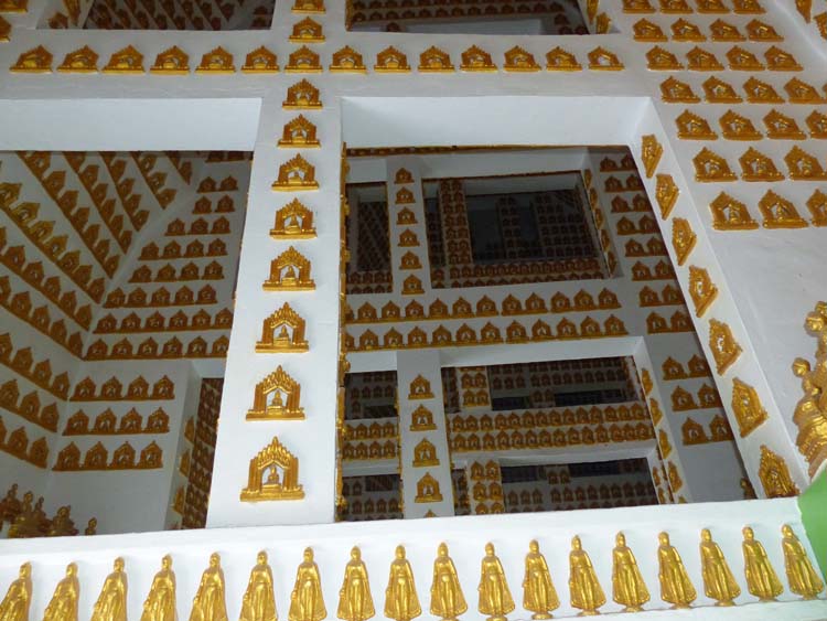 liegender Buddha, auch an den Wänden gibt es unzählige Figuren vom Buddha