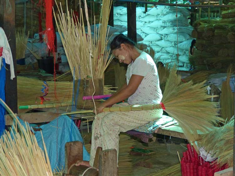 Herstellung von Besen, mit flinken Händen werden die Besen gebunden