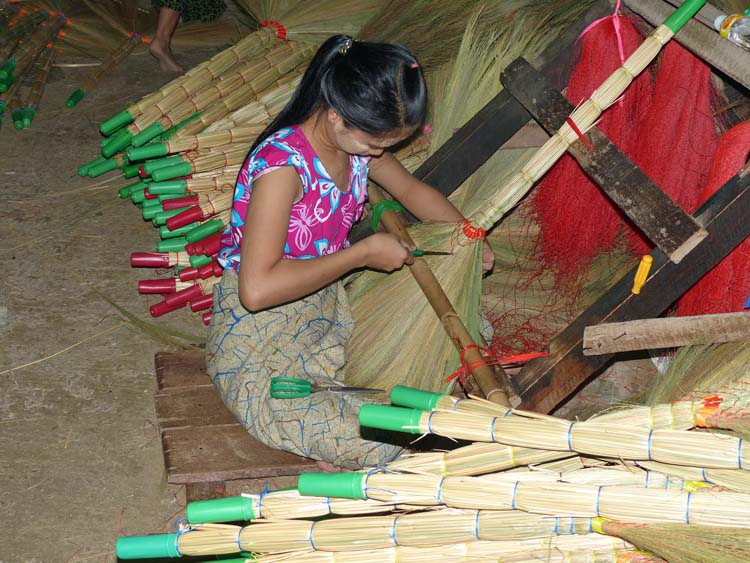 Herstellung von Besen, Feinarbeit am Schluss