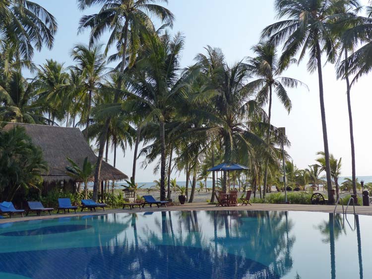 Myanmar Treasure Resort, Pool mit dem Strand im Hintergrund