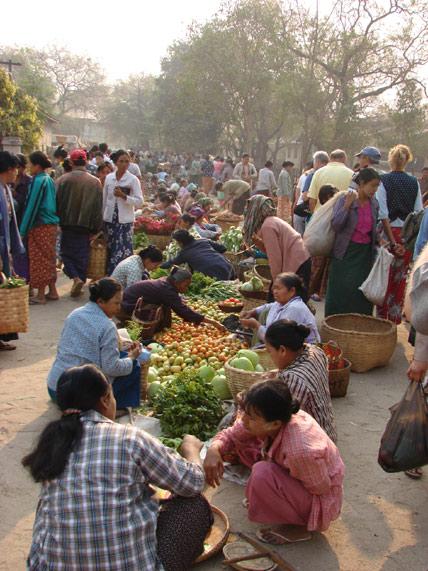 Nyaung Oo Markt Auf dem Markt herrschte sehr viel Betrieb.