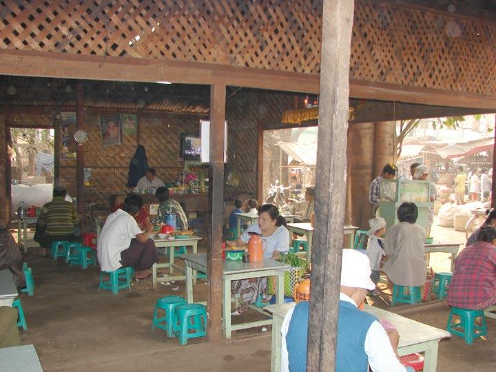 Nyaung Oo Markt Natürlich darf auch ein kleines Restaurant nicht fehlen.