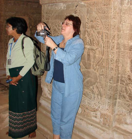 Nanpaya Tempel Silvia fotografiert auch die Steinreliefe.