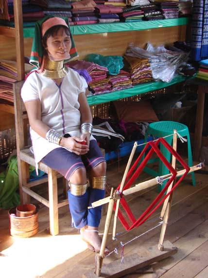 Langhalsfrauen Shanfrauen und ihren ganzen Stolz , die vergoldeten Ringe um ihren Hals und den Beinen.