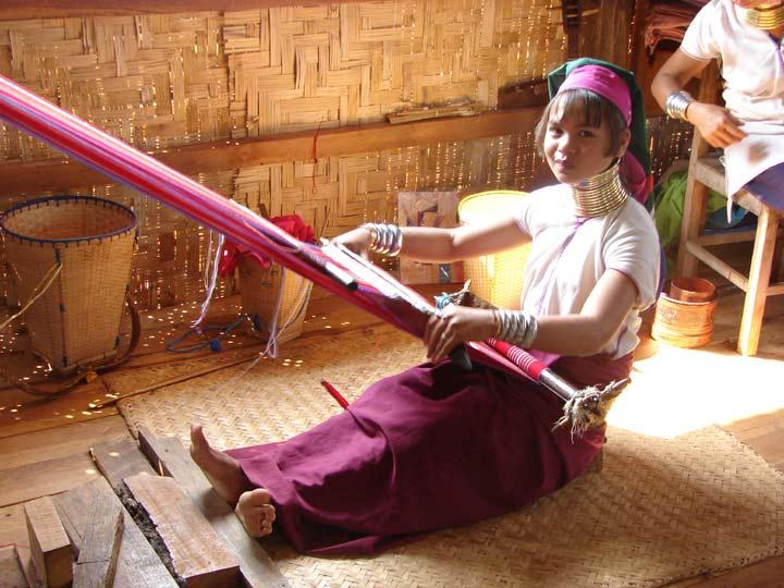 Langhalsfrauen Mit Webarbeiten verdienen sie etwas Geld.