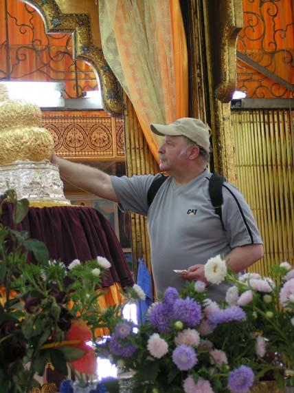 Phaung daw U Pagode Auch wir mussten die Buddha-Statuen mit Goldblättchen bekleben.
