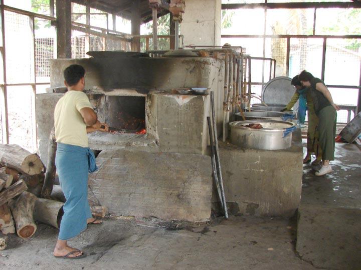 Mahagandhayon Kloster Rechts wird der Reis in riesigen Pfannen gekocht!
