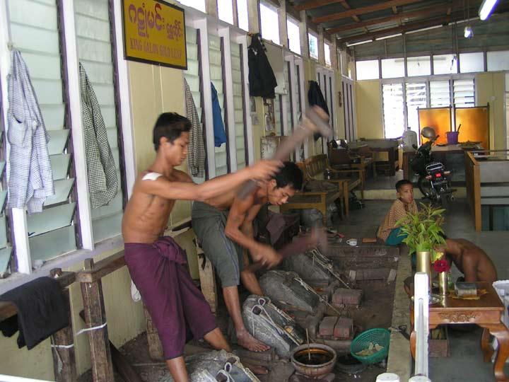 Blattgoldherstellung Stundenlang wird das Gold geklopft bis daraus Blattgold wird.