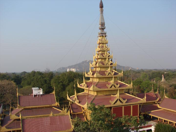 Stadtpalast Im Hintergrund sieht man den Mandalay-Hügel und darunter unser Hotel das Mandalay Hill Rosort.