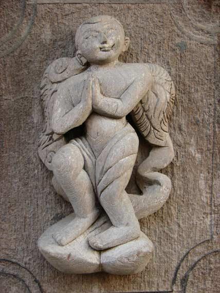 Shwenandaw Kloster Sehr ungewöhnlich sind die Engel-Figuren an einem Buddhistischen Kloster!