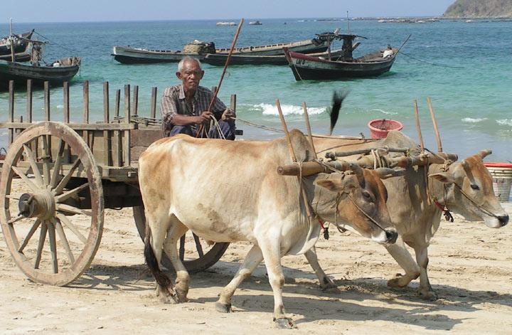 Am Strand Die Schiffe wurden noch mit Ochsenkarren entladen!