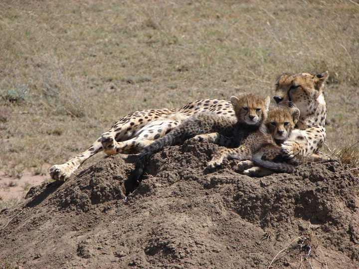 Eine Leopardenmutter mit ihren zwei Jungen.
