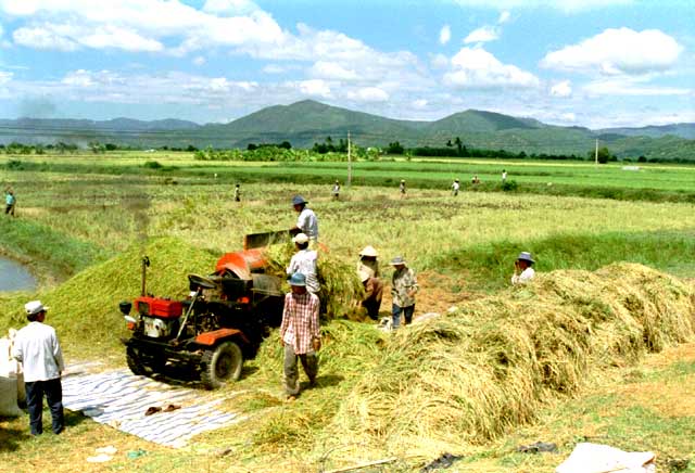 Reisbauern bei der Arbeit auf der Fahrt nach Saigon