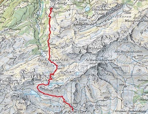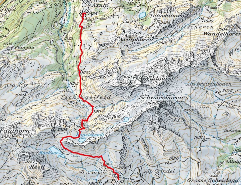 - Route: Axalp - Chüemad - Tschingelfeldalp - Hagelseeli - First