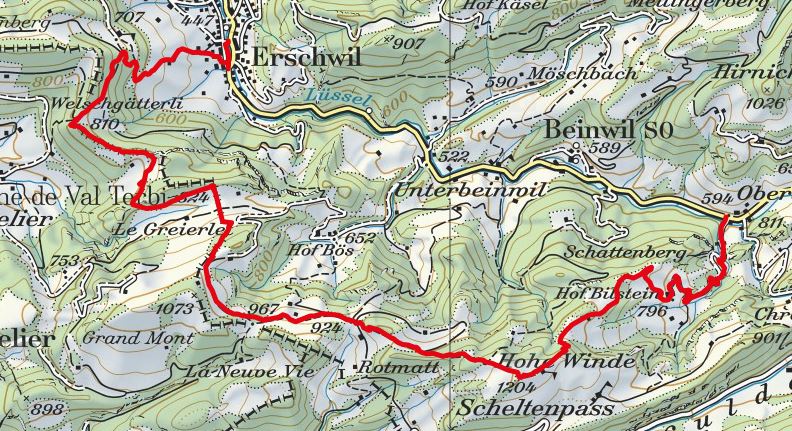 - Route: Erschwil - Welschgätterli - Hohe Winde - Beinwil