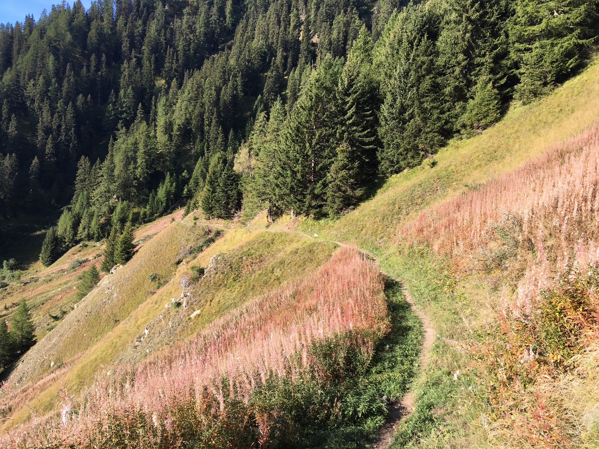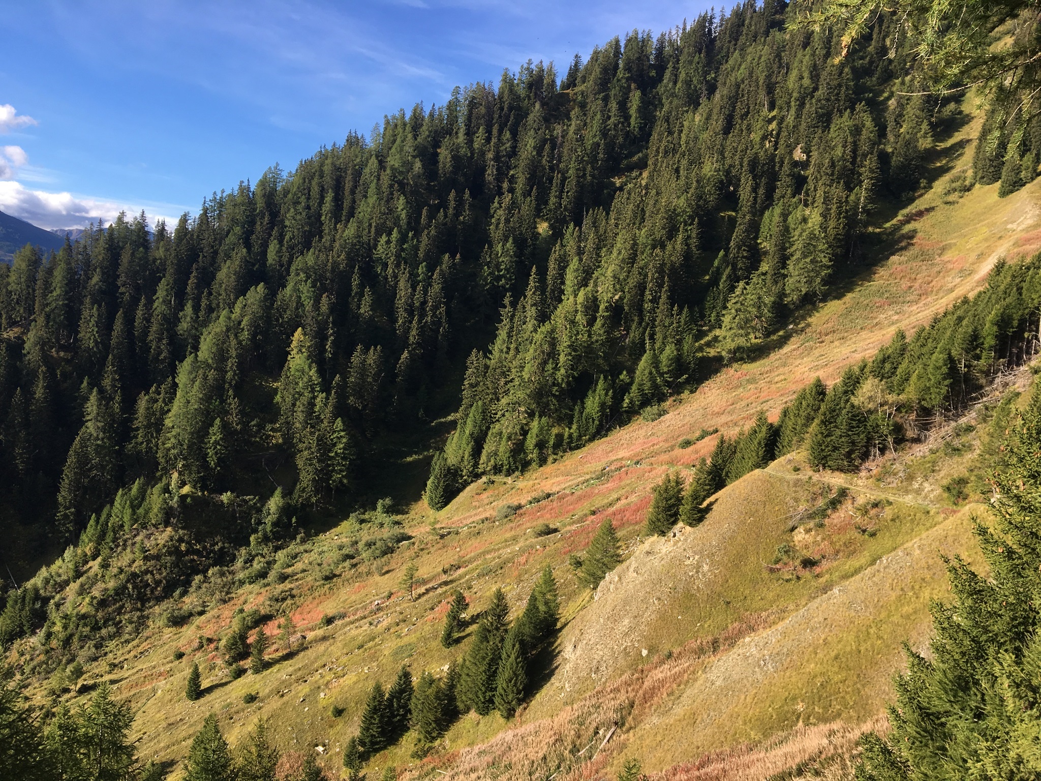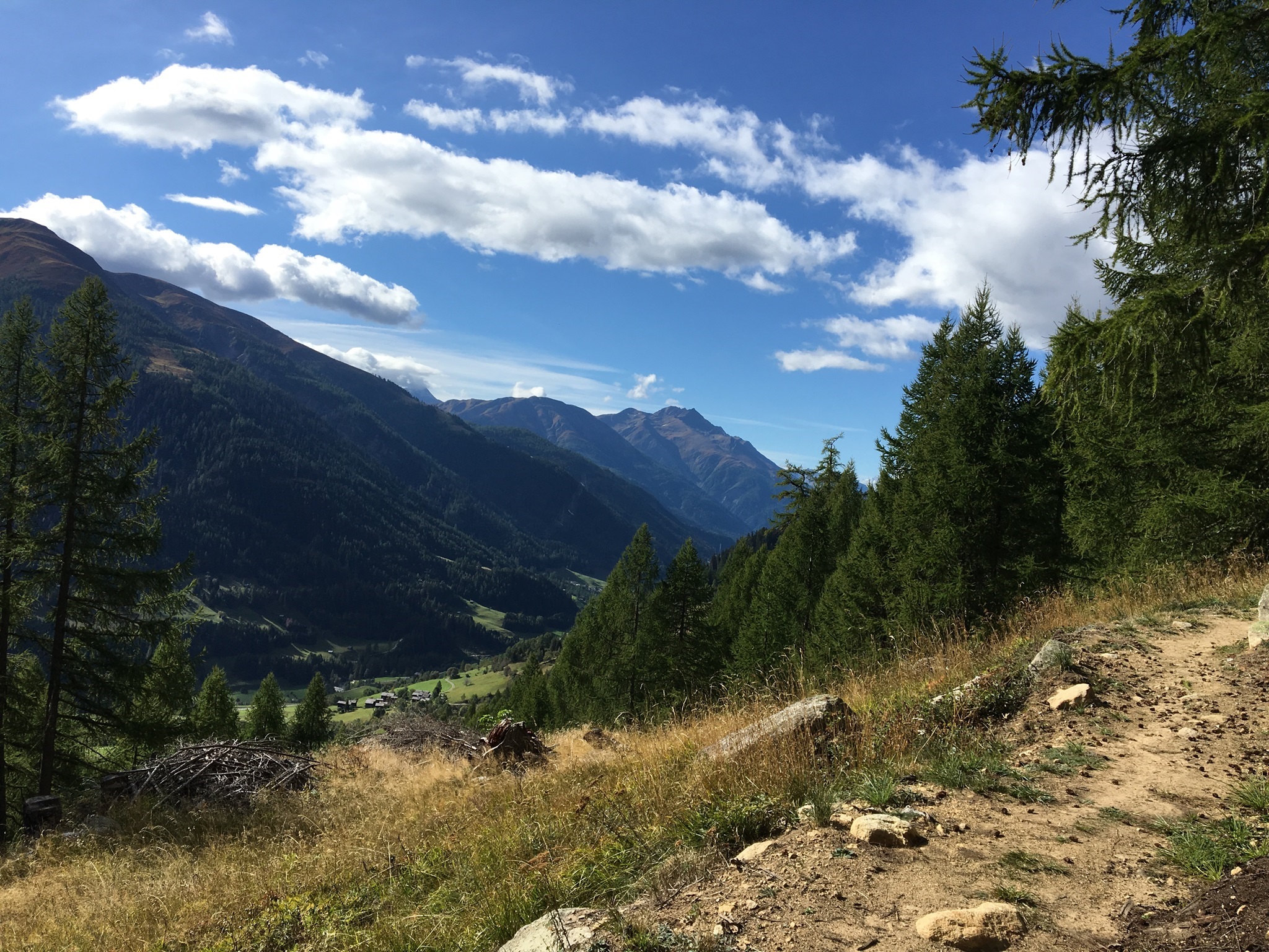 Zuerst geht es recht steil hinauf zur Gufermatte. Von hier geht es immer wieder hinunter und hinauf. Es ist ein sehr schöner Wanderweg mit vielen Aussichten auf das Tal, zudem geht es meisten durch die Wälder.