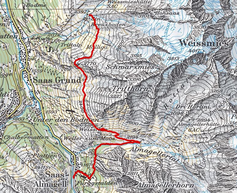 - Route: Saas Allmagell - Furggstalden - Almagelleralp -Kreuzboden