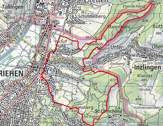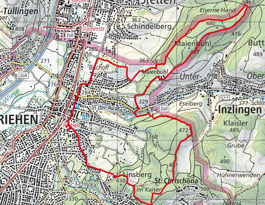 - Route: Riehen - Stettenfeld - Mainbühl - Eiserne Hand - Maienbühl - Autäli - Chrichona - Riehen