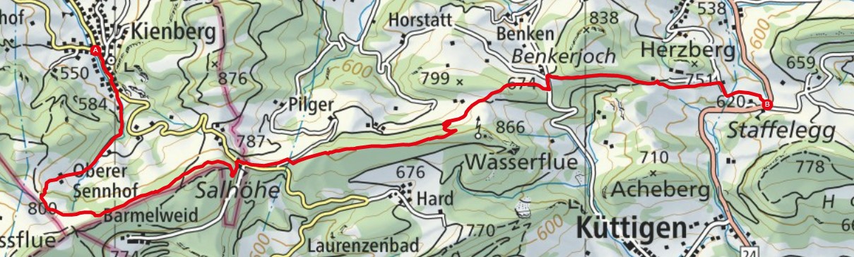 - Route: Kienberg - Sennhof - Salhöhe - Uf der Egg - Benkerjoch - Herzberghof - Staffelegg