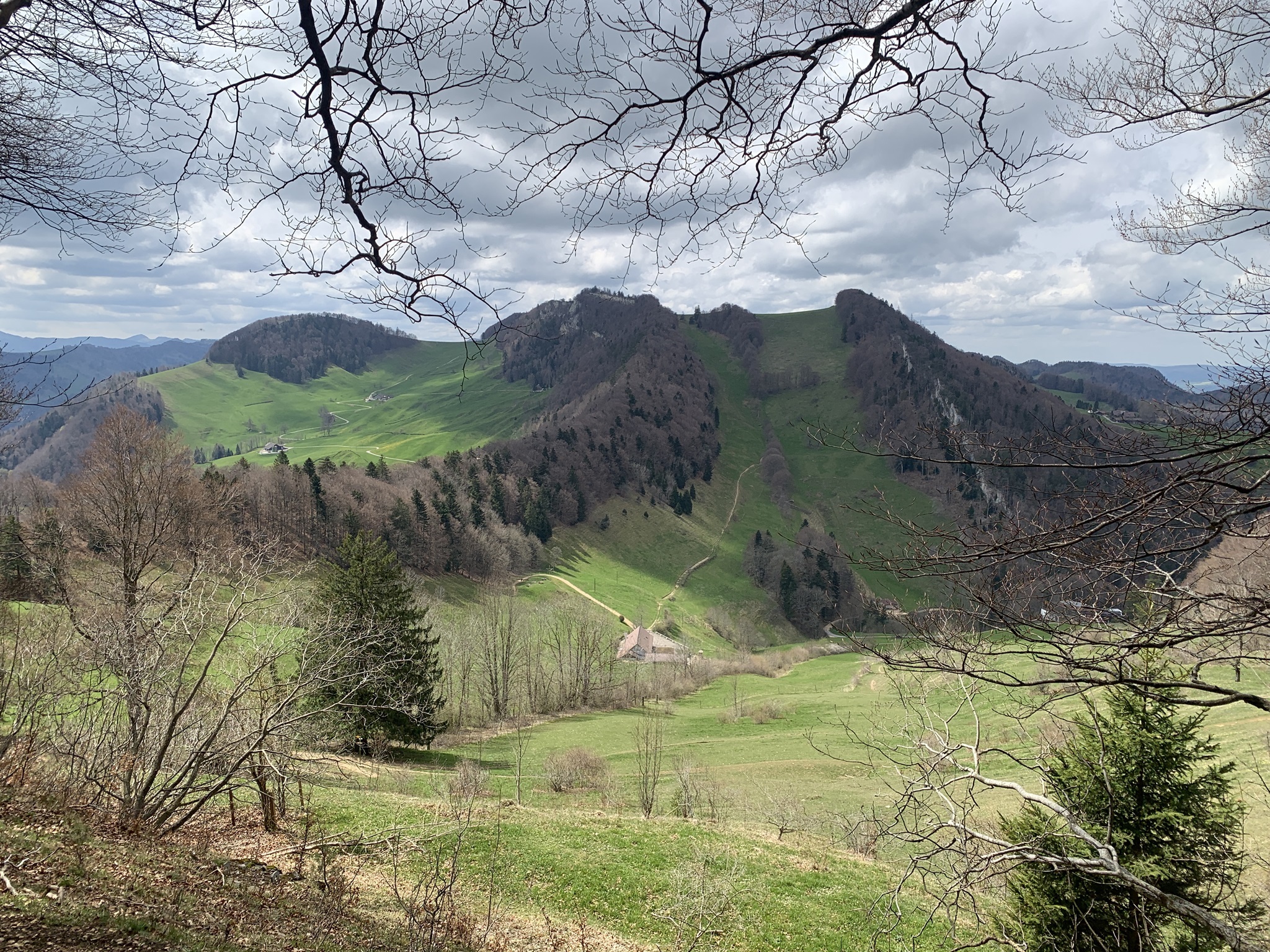 Von hier ging ich dann auf dem Grat bis zur hinteren Wasserfalle. Jetzt wählte ich noch die Zusatzrunde über das Chellenchöpfli und den höchsten Punkt im Basel-Land, die hinderi Egg.