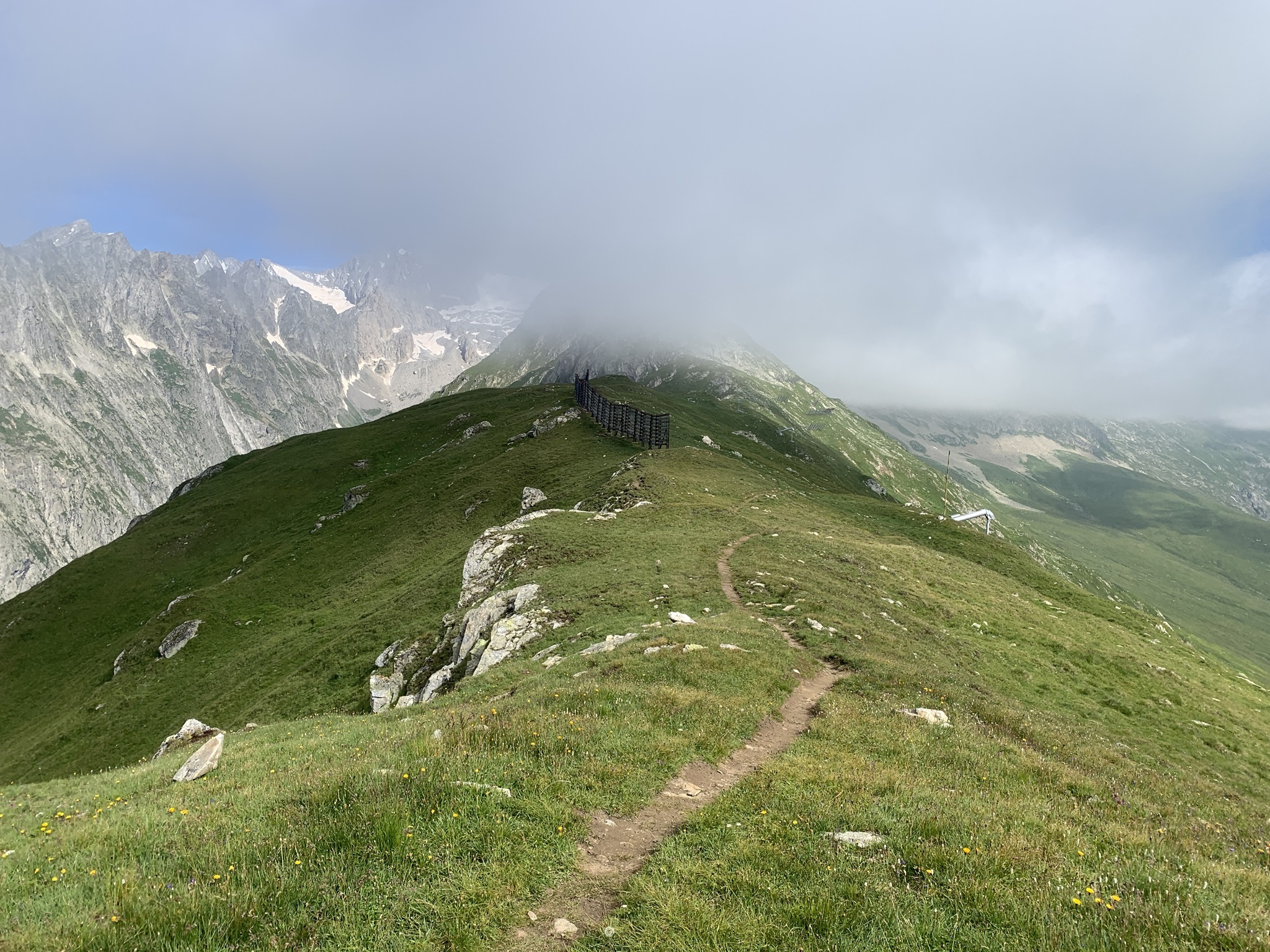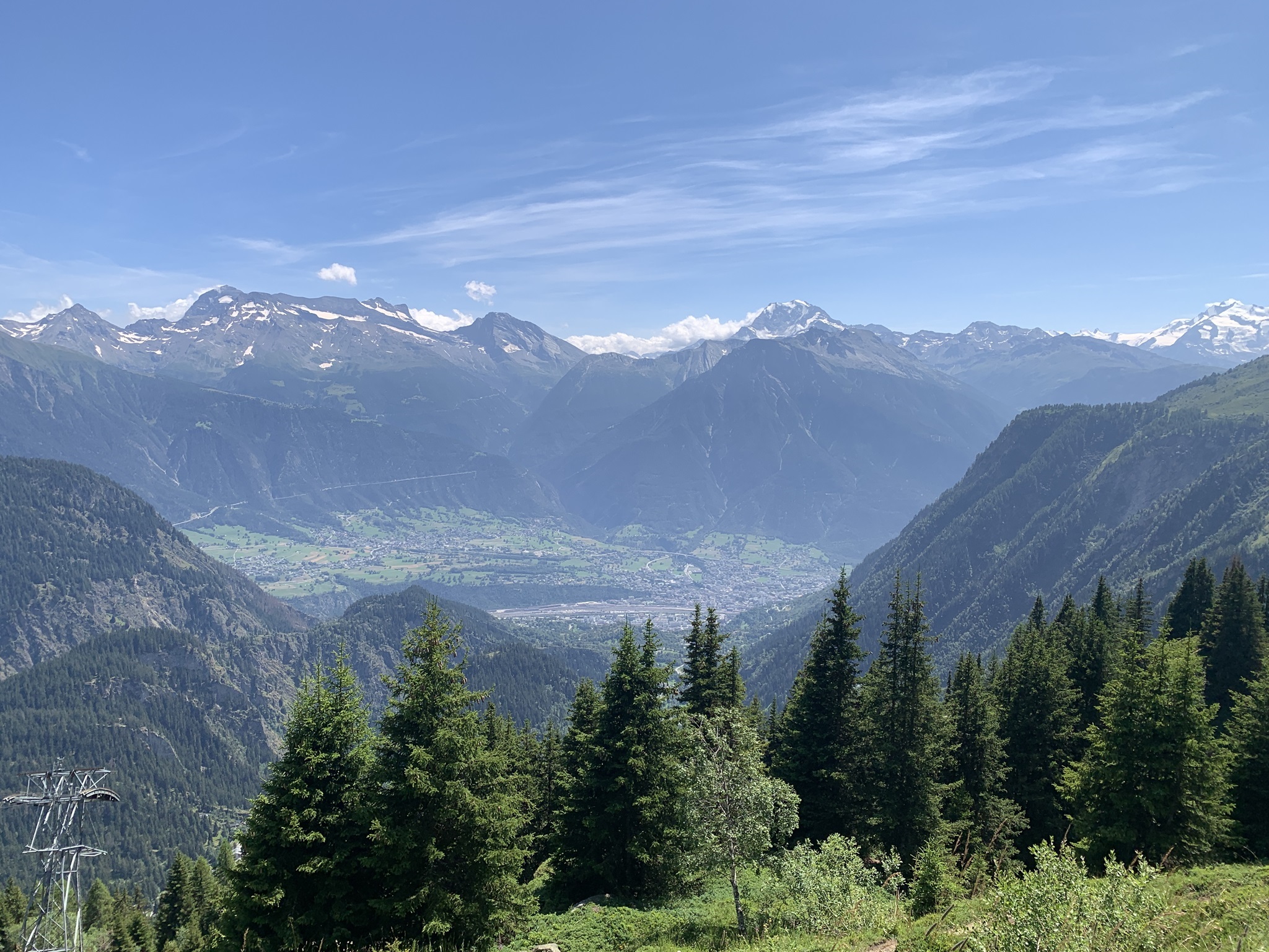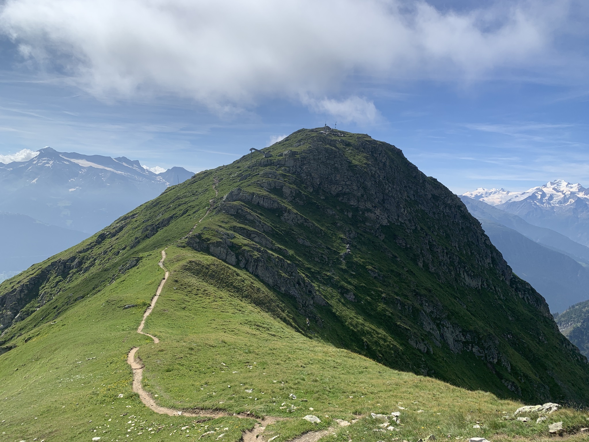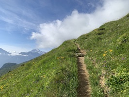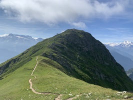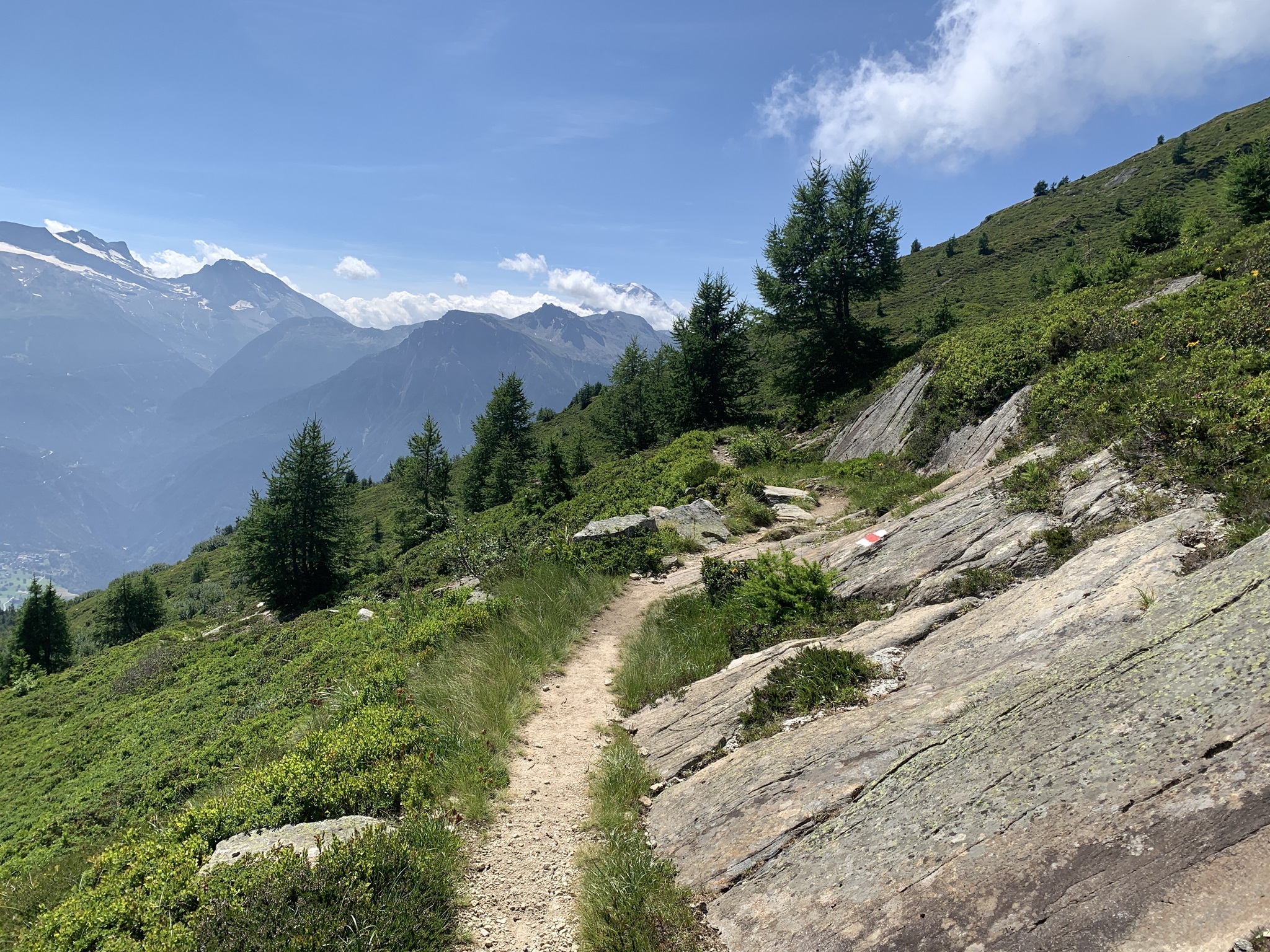Zuerst geht es ein kurzes Stück hinunter zum Chelchbach. Jetzt geht es aber sehr steil hinauf zum Grat. Aber man hat die ganze Zeit einen schönen blick in das Tal und auch schon bald auf den Aletschgletscher. Auf dem Grat angekommen geht es recht gemütlich weiter aufwärts bis zum Foggenhorn. Hier hat man dann einen wunderschöne Rundumsicht. Es ist sogar das Matterhorn zu sehen.