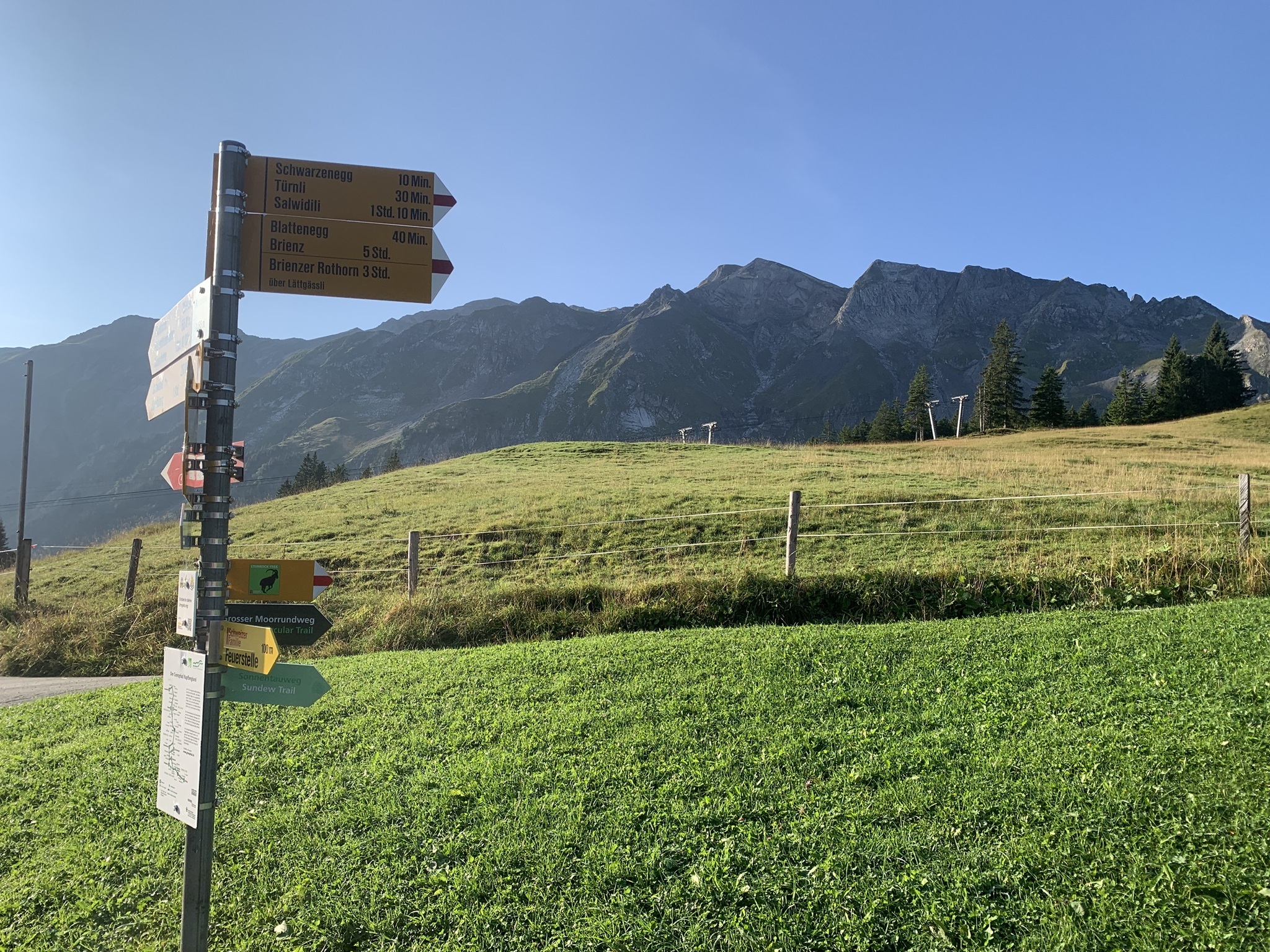 Hier starte ich diese kurze aber sehr steile Wanderung auf das Brienzer Rothorn.
