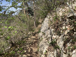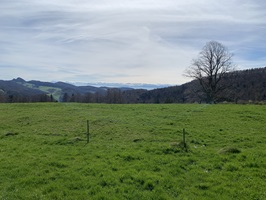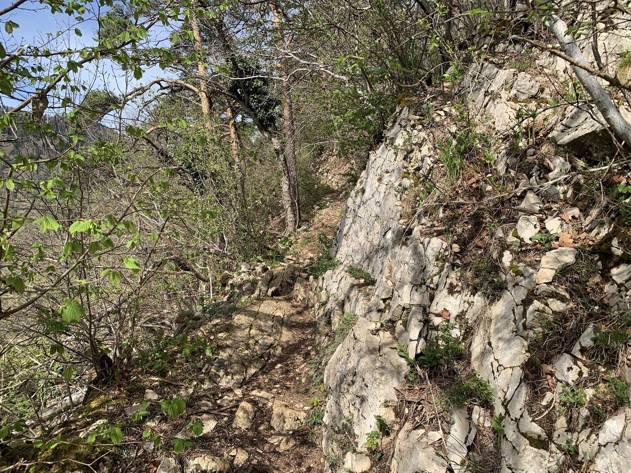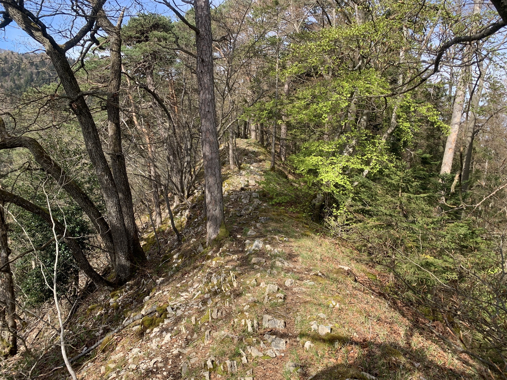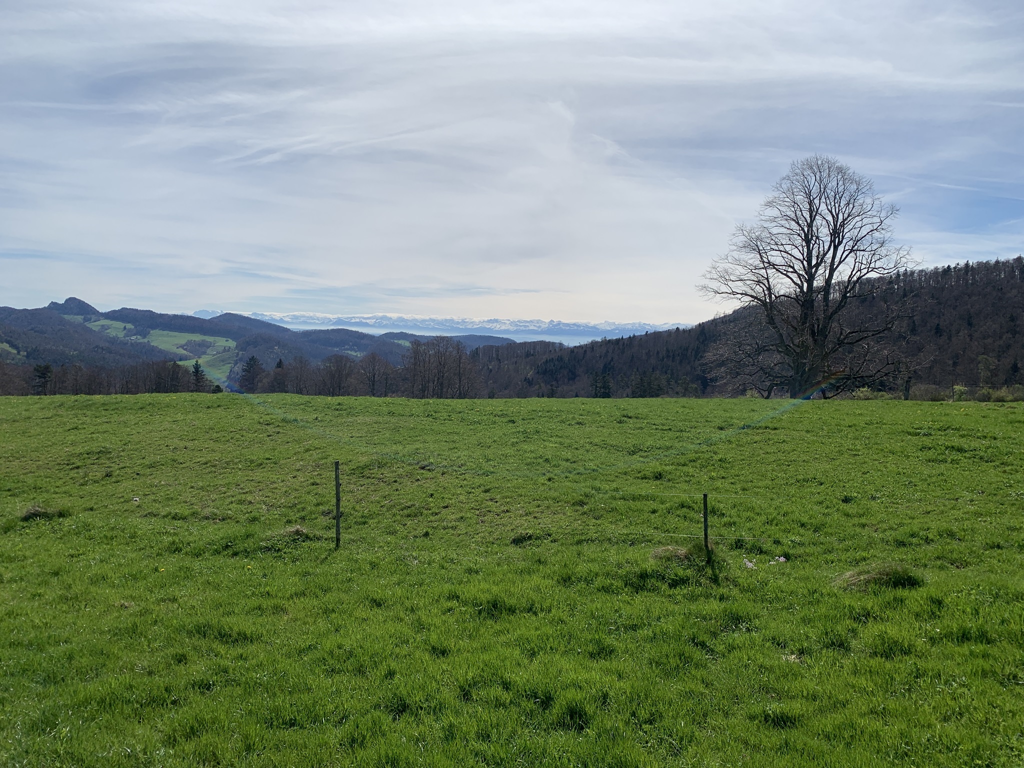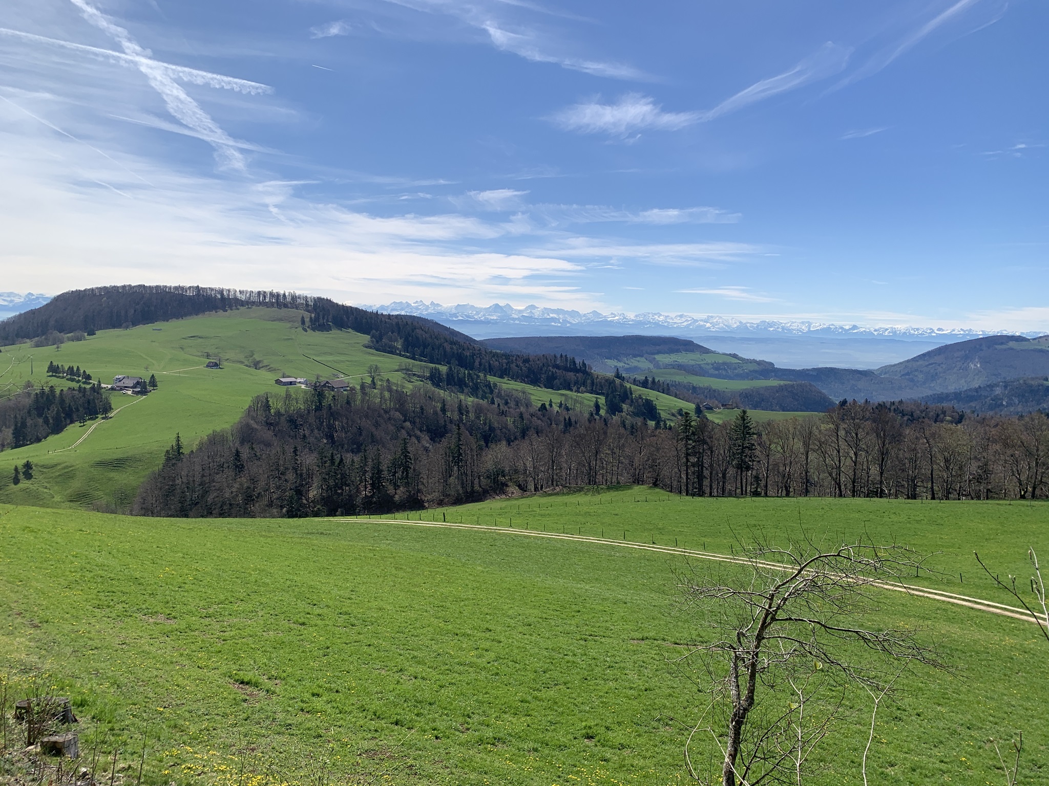 Zuerst geht es auf Hartbelag durch das Dorf und hinauf Richtung RIchtifluh. Aber schon bald zweigt der Weg rechts ab und es geht auf einem Gebirgswanderweg über die Richtifluh. Schon bald hat man einen schönen Blick in das Tal. Der Weg führt über Den Grat über Steine und Wurzeln.