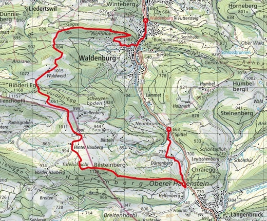 - Route: Waldenburg - Richtifluh - Waldweid - vorderi Egg - Sool - Bilsteinberg - Spittel Langenbruck