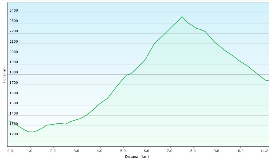 - Höhenmeter: Aufstieg: 1208m, Abstieg: 844m (gemäss SchweizMobile)