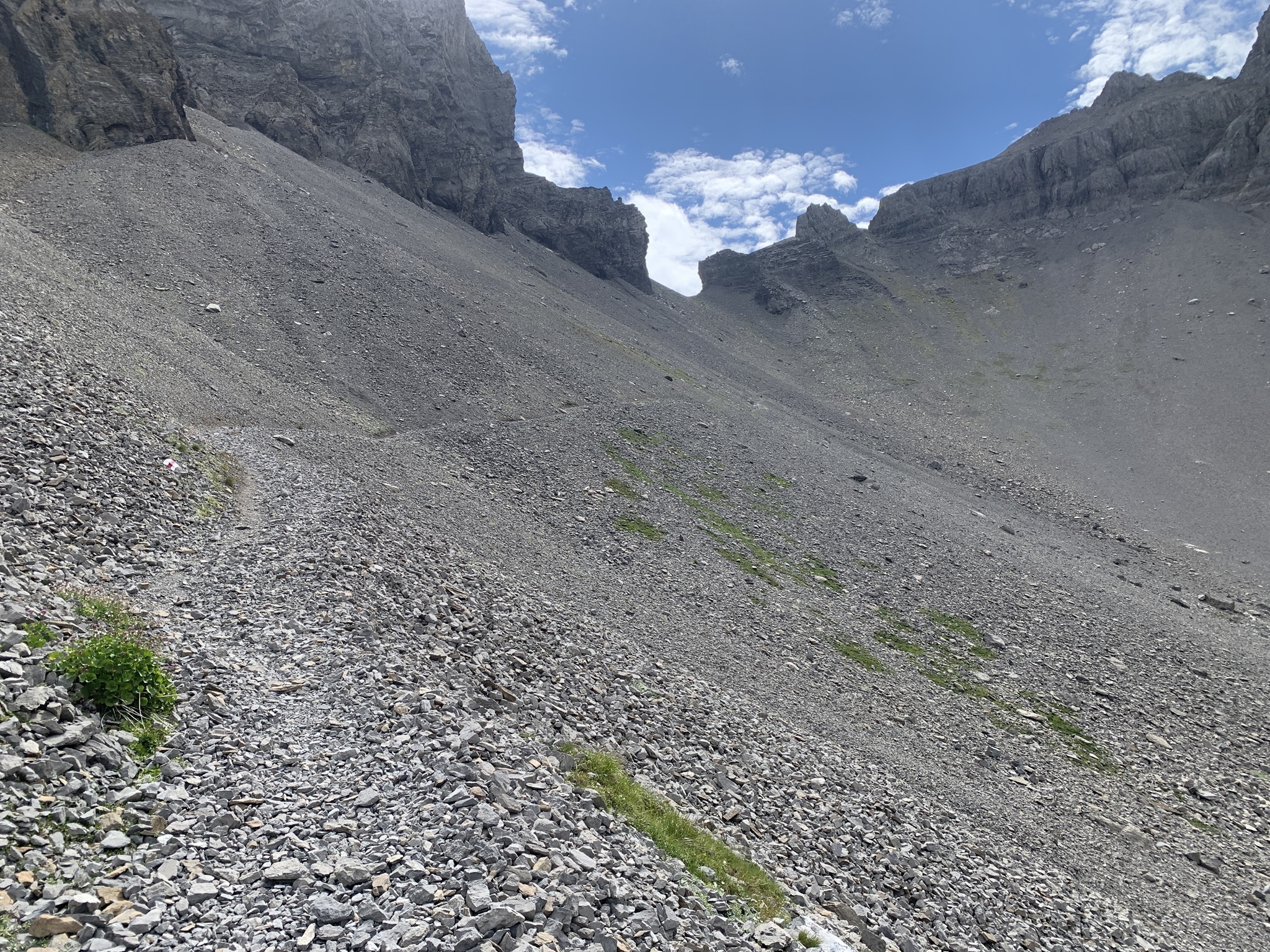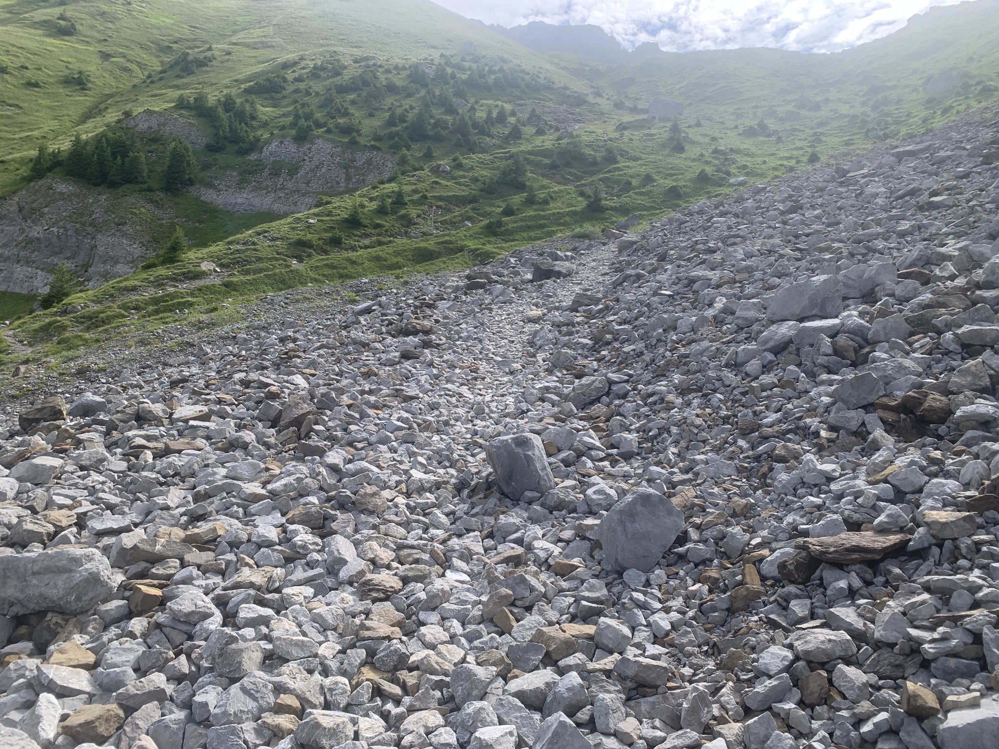 Danach zweigt ein Bergwanderweg rechts ab und es geht von nun an zum Teil recht steil hinauf. Das letzte Teil auf die Bunderchrinde geht über einen einen Geröllweg. Dieser ist zum Ende sehr steil!