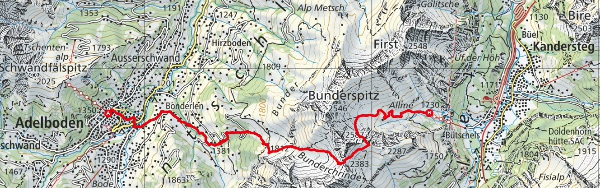 - Route: Adelboden - Oey - Bonderlen - Bunderchrinde - Allmenalp