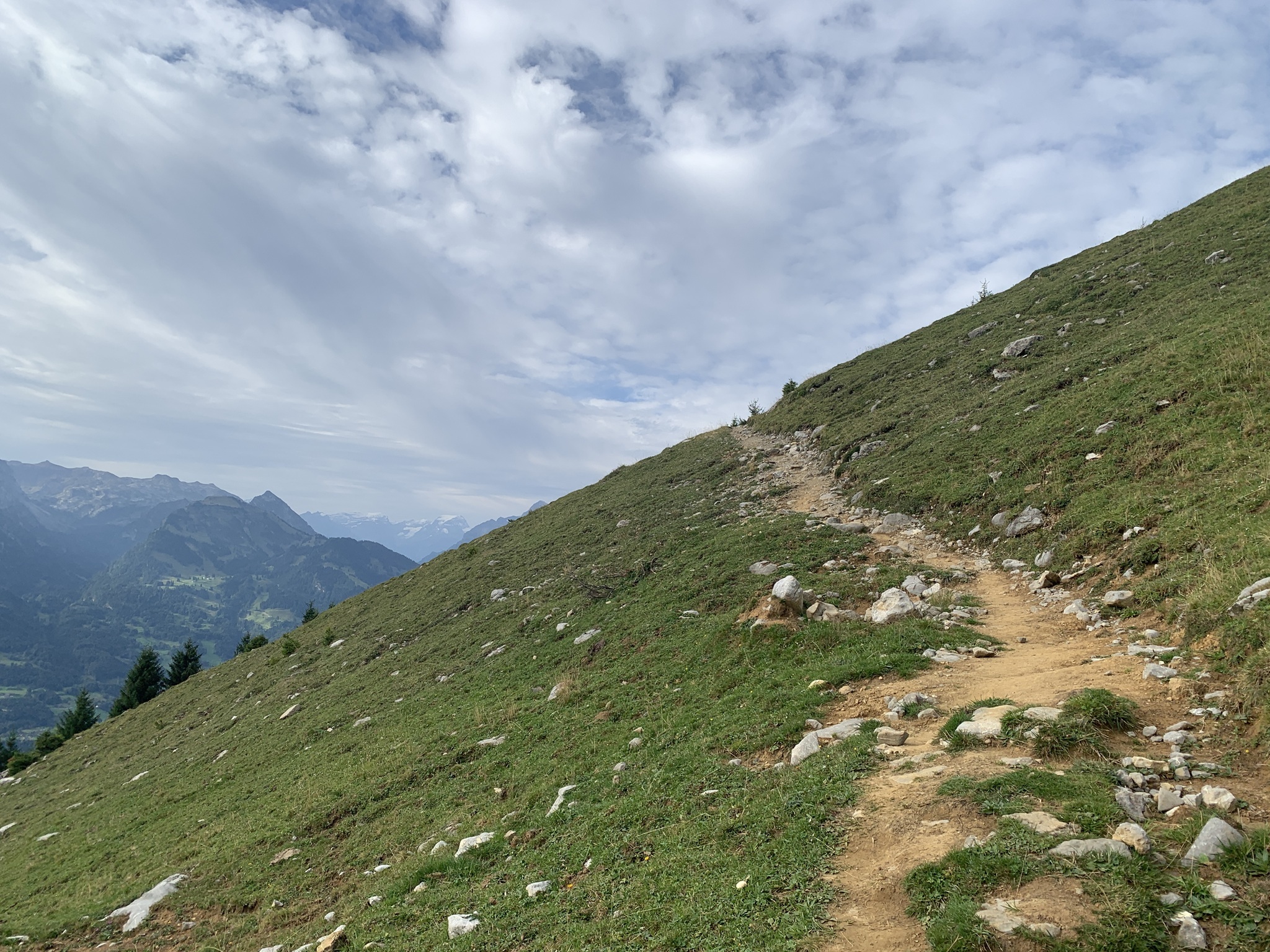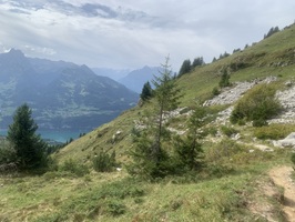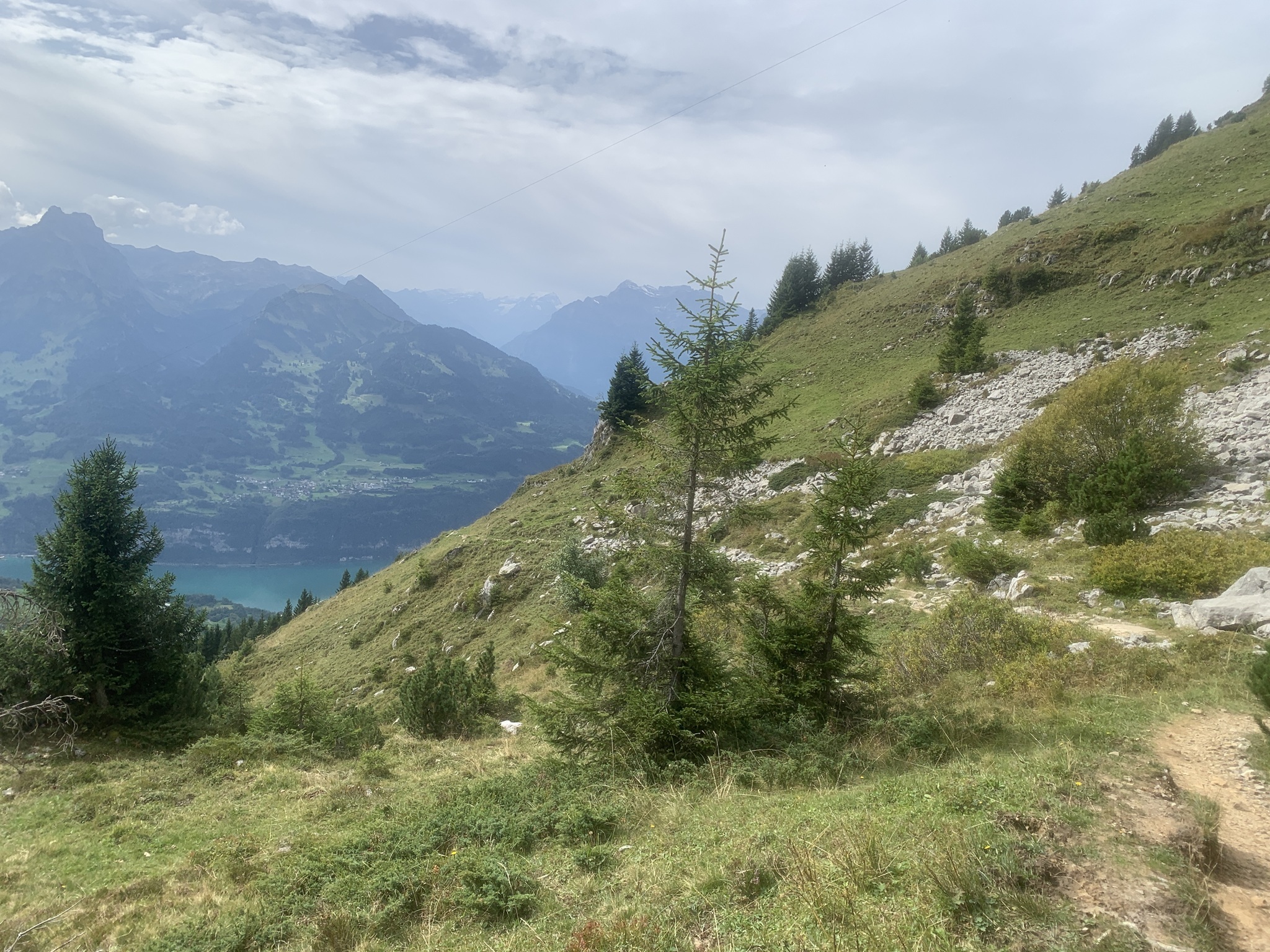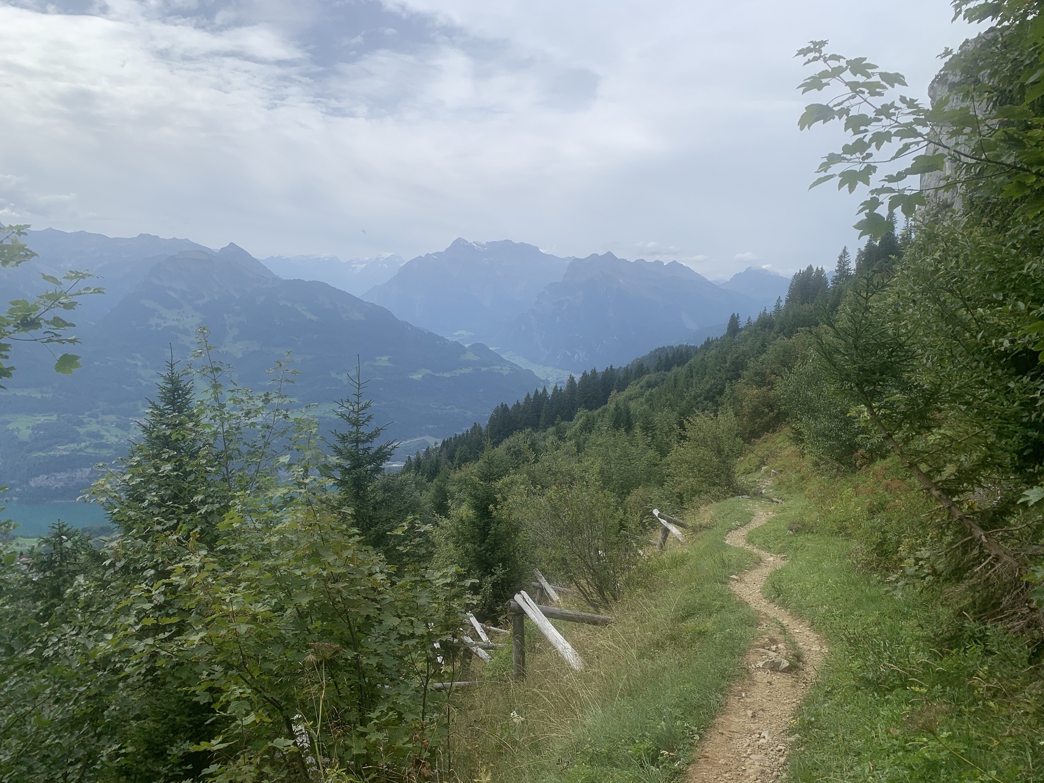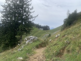 Von hier ab geht es sofort steil, zuerst durch den Wald, danach über Wiesen, auf Bergwanderwegen hinauf auf die Alp Walau.