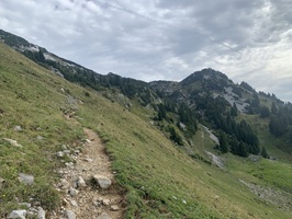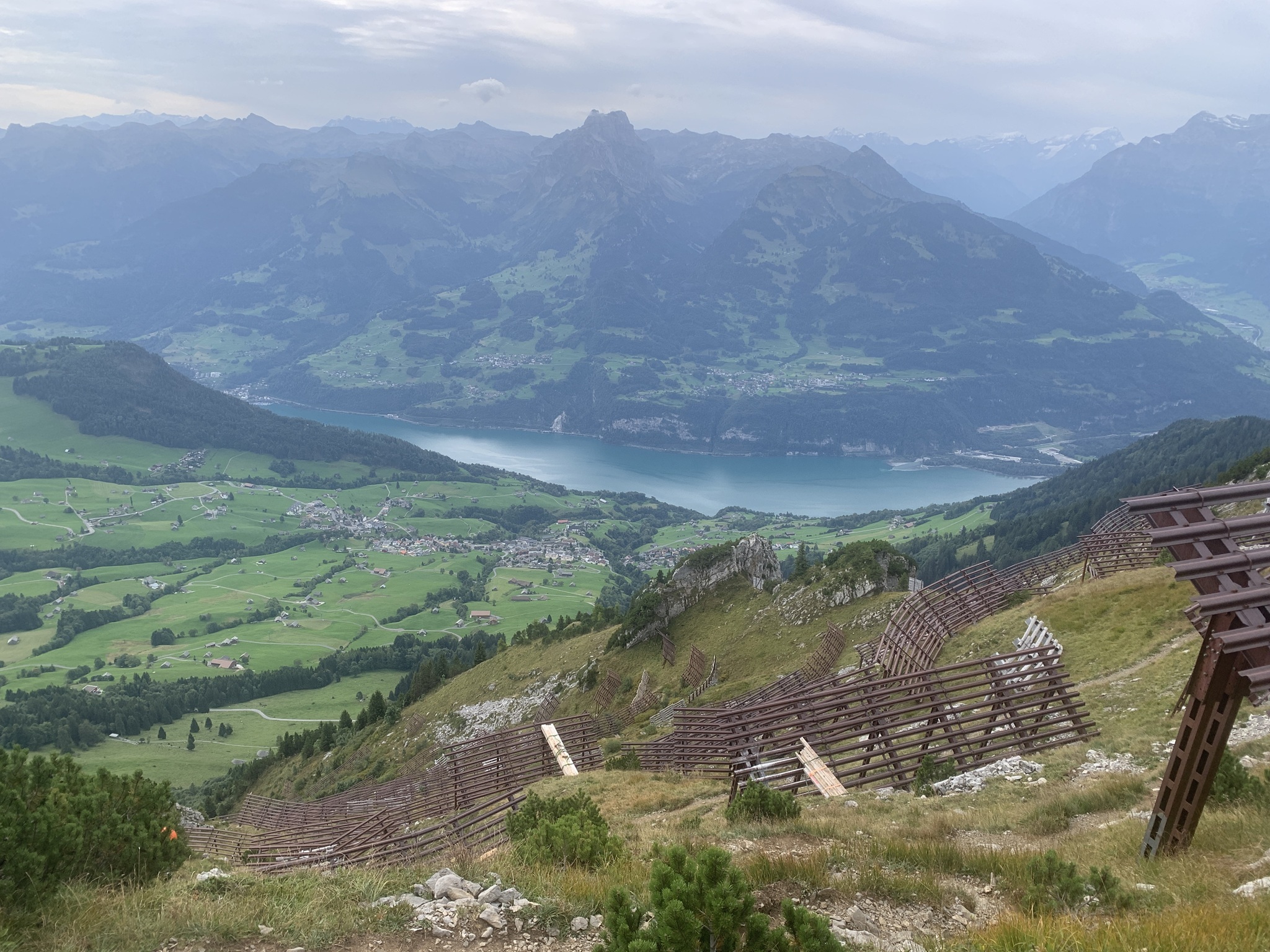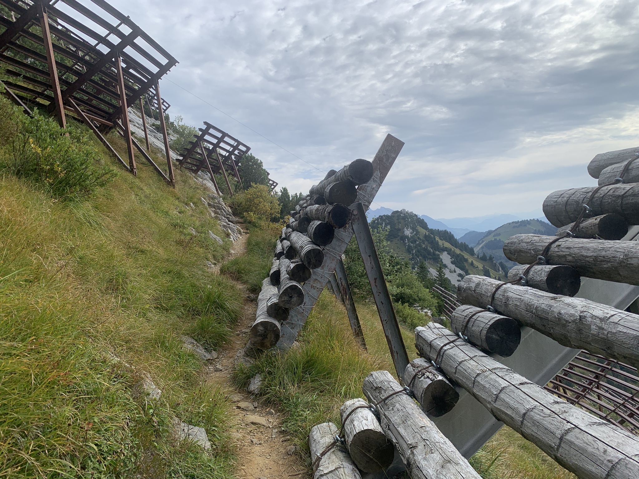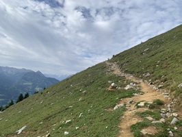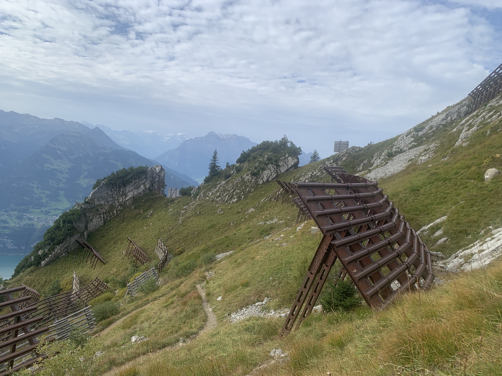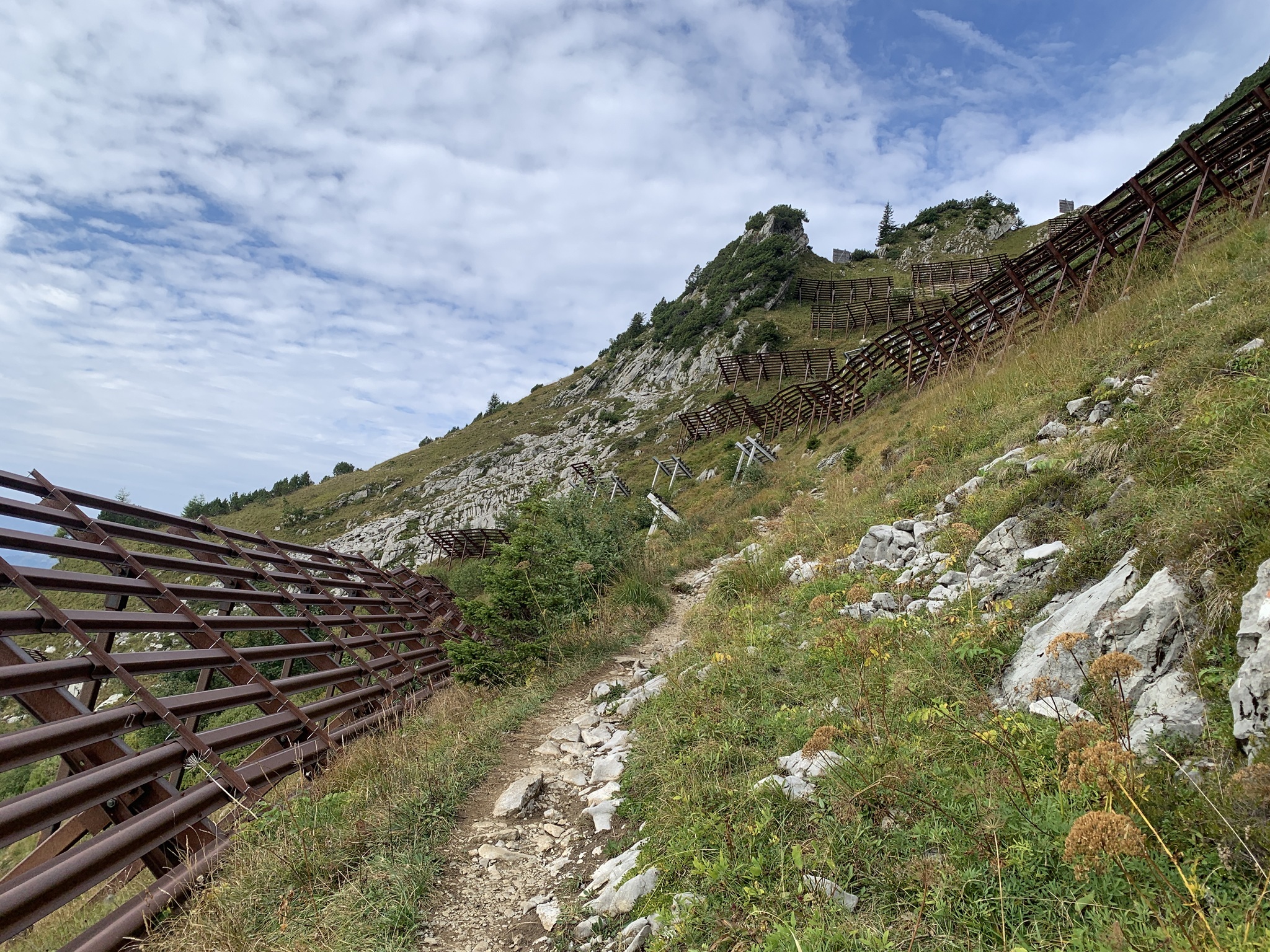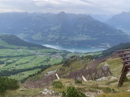 Weiter geht es über Alpwiesen hinauf bis die Lawinenverbauungen kommen. Hier geht es quer durch diese Verbauungen. Am Schluss folgt ein T3 Abschnitt auf den Gipfel.