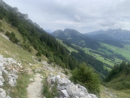 Vom Oberfurggle folgt ein sanfter Abstieg auf leider fast zu fest ausgebauten Wanderwegen. Da wurden oft die kleinen Steine mit Zement verfestig, was zum Wandern gleich kam wie Hartbelag.