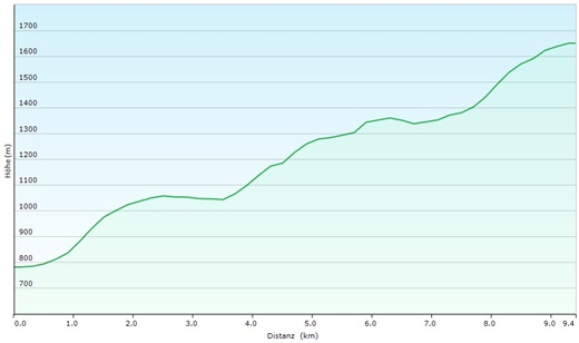 - Höhenmeter: Aufstieg: 959m, Abstieg: 88m (gemäss SchweizMobile)