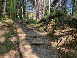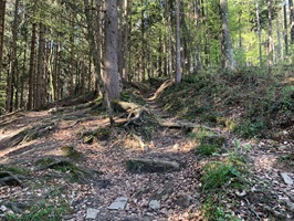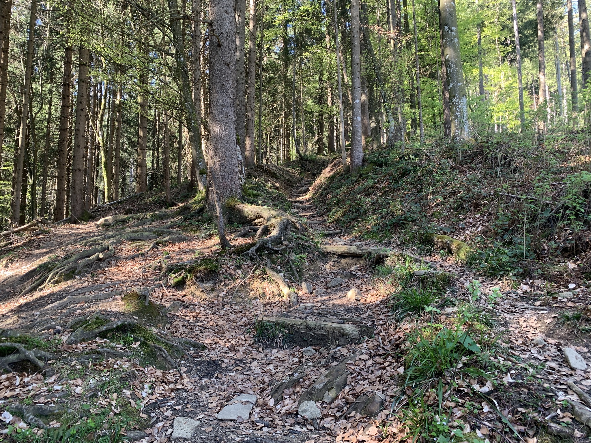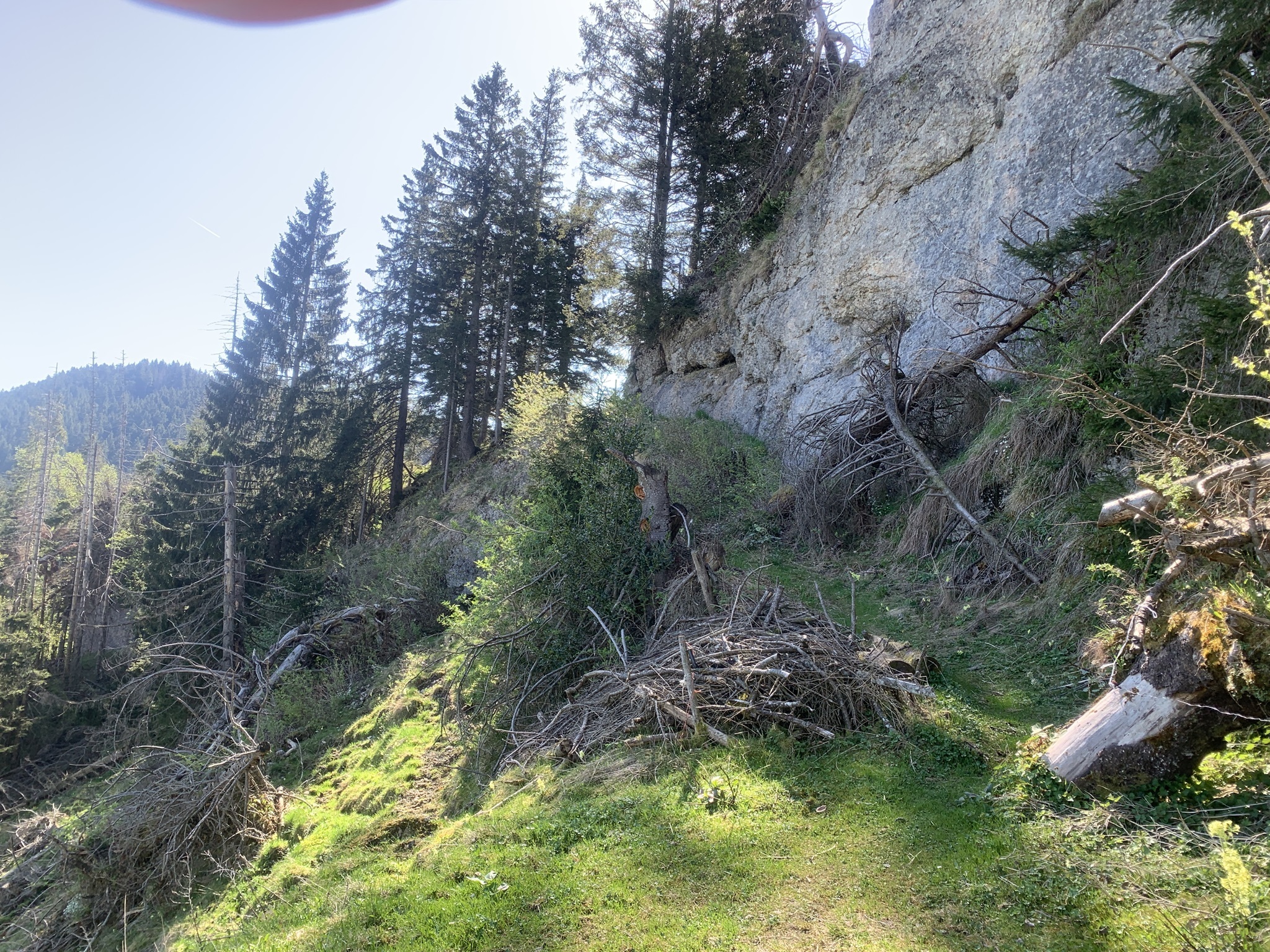 Danach geht es weiter über Wiesen bis nach Kaubad. Hier bin ich dann vom offiziellen Wanderweg abgekommen, aber dieser kleiner Umweg war auch sehr schön. Zuerst ging es durch den Wald und dann wieder über Wiesen und an einer kleinen Felswand entlang.