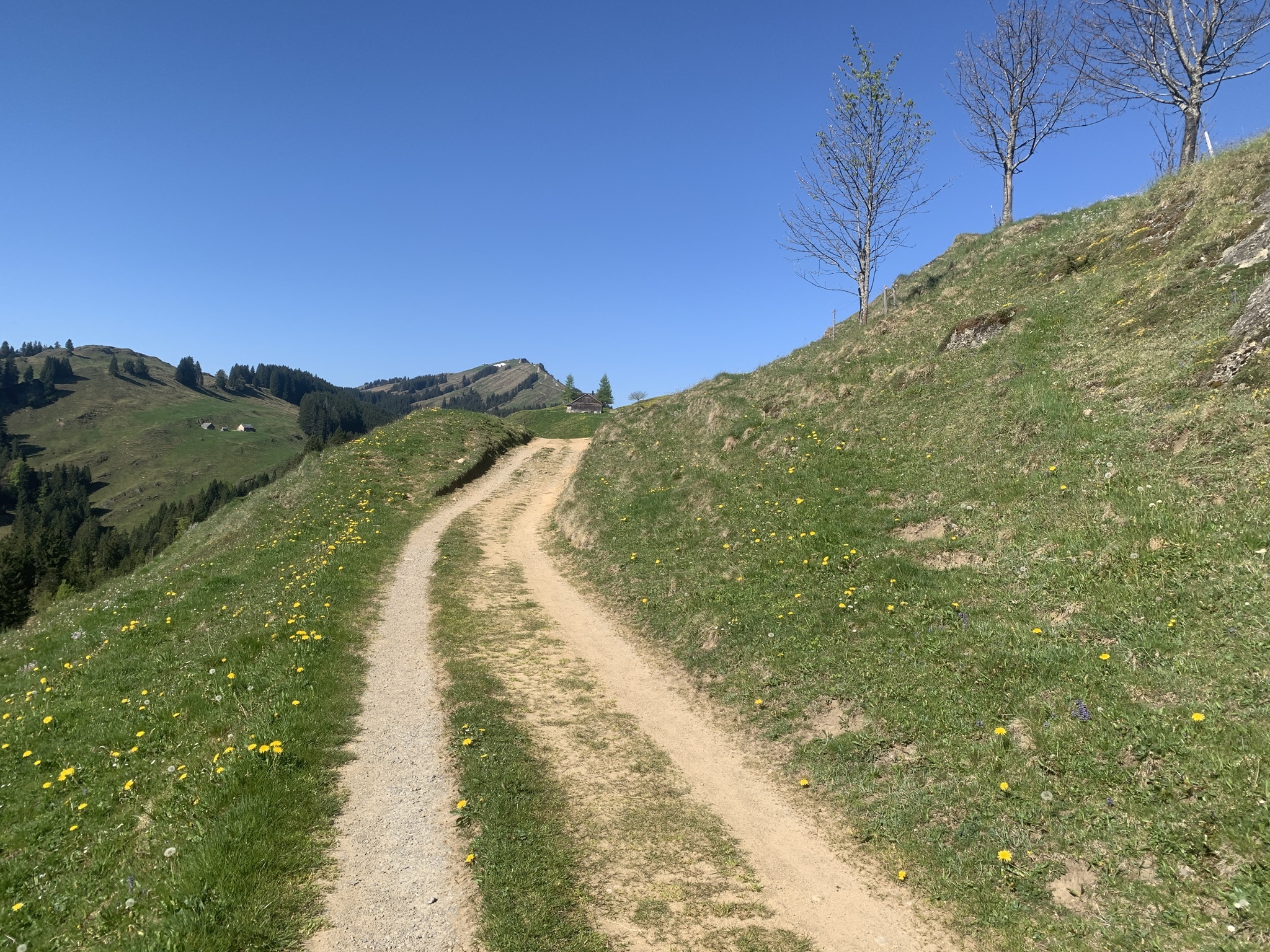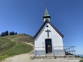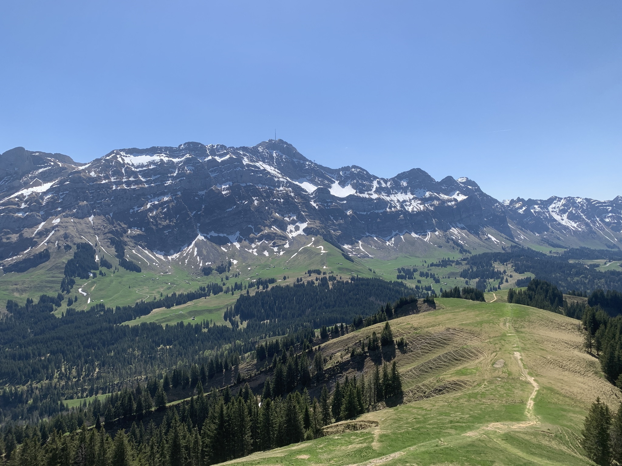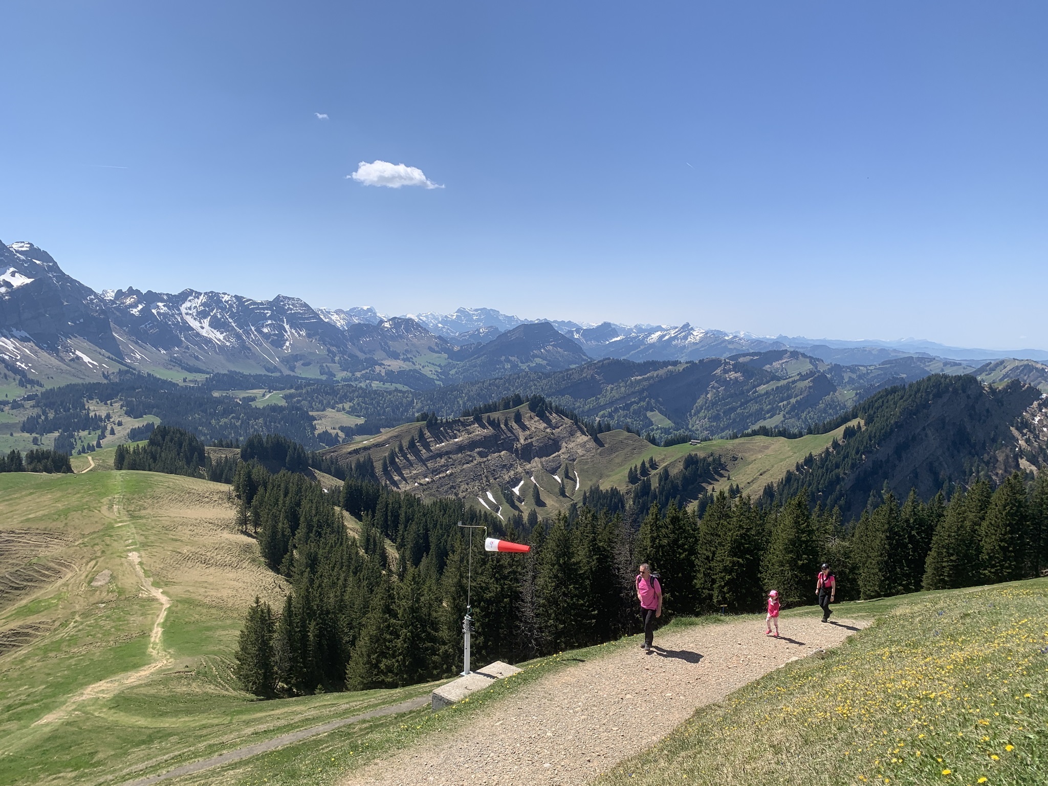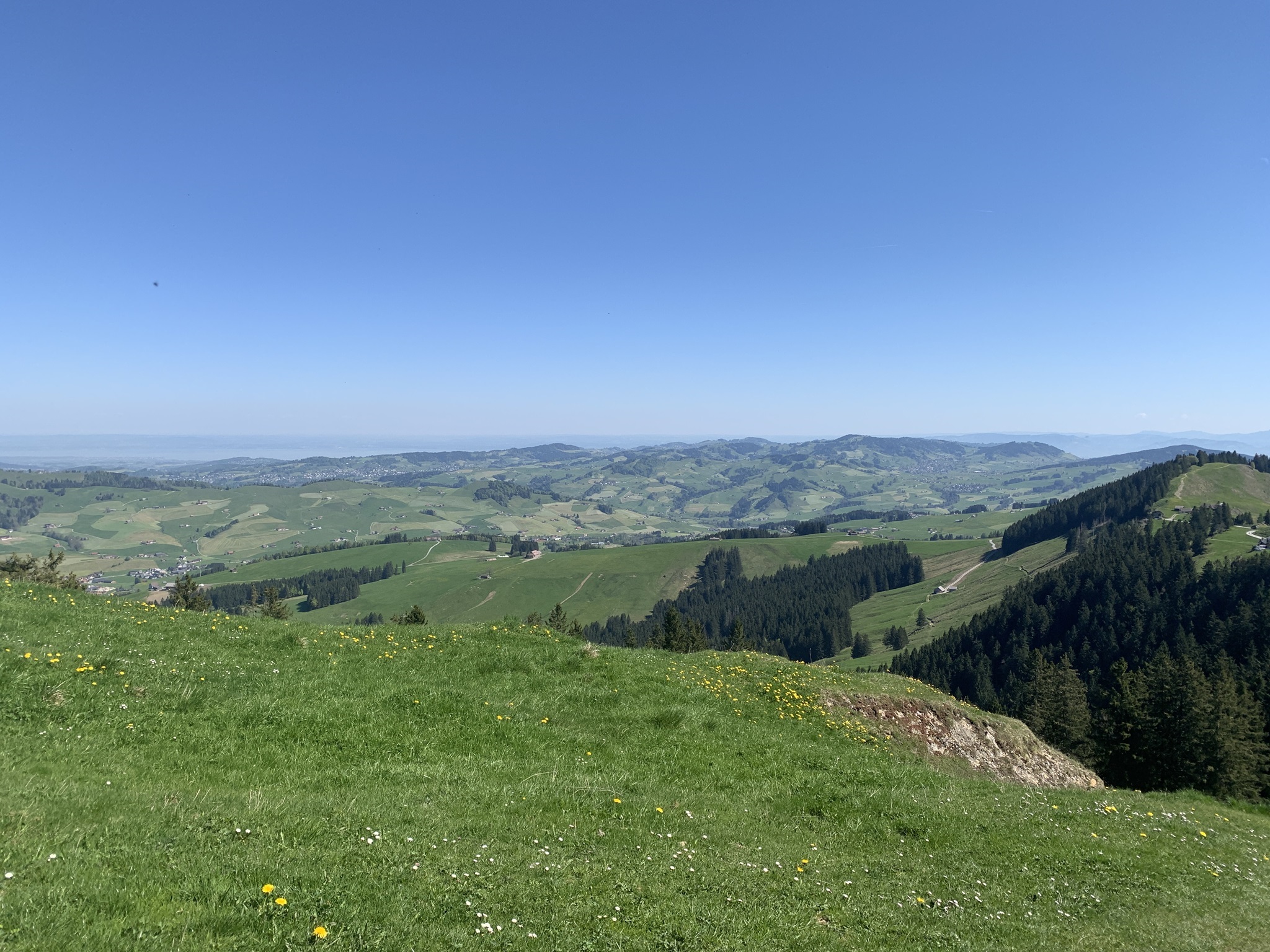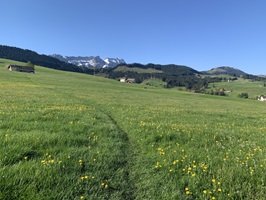 Gleich danach geht es wieder steiler hinauf, vorbei an der Kapelle St.Jakob. Zur linke Seite ist schon lange der Säntis zu sehen und rechts ein traumhafter Weitblick! Am Schluss geht es dann gemächlicher hinauf.