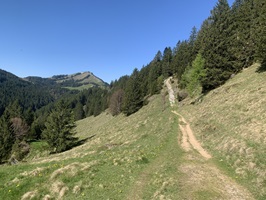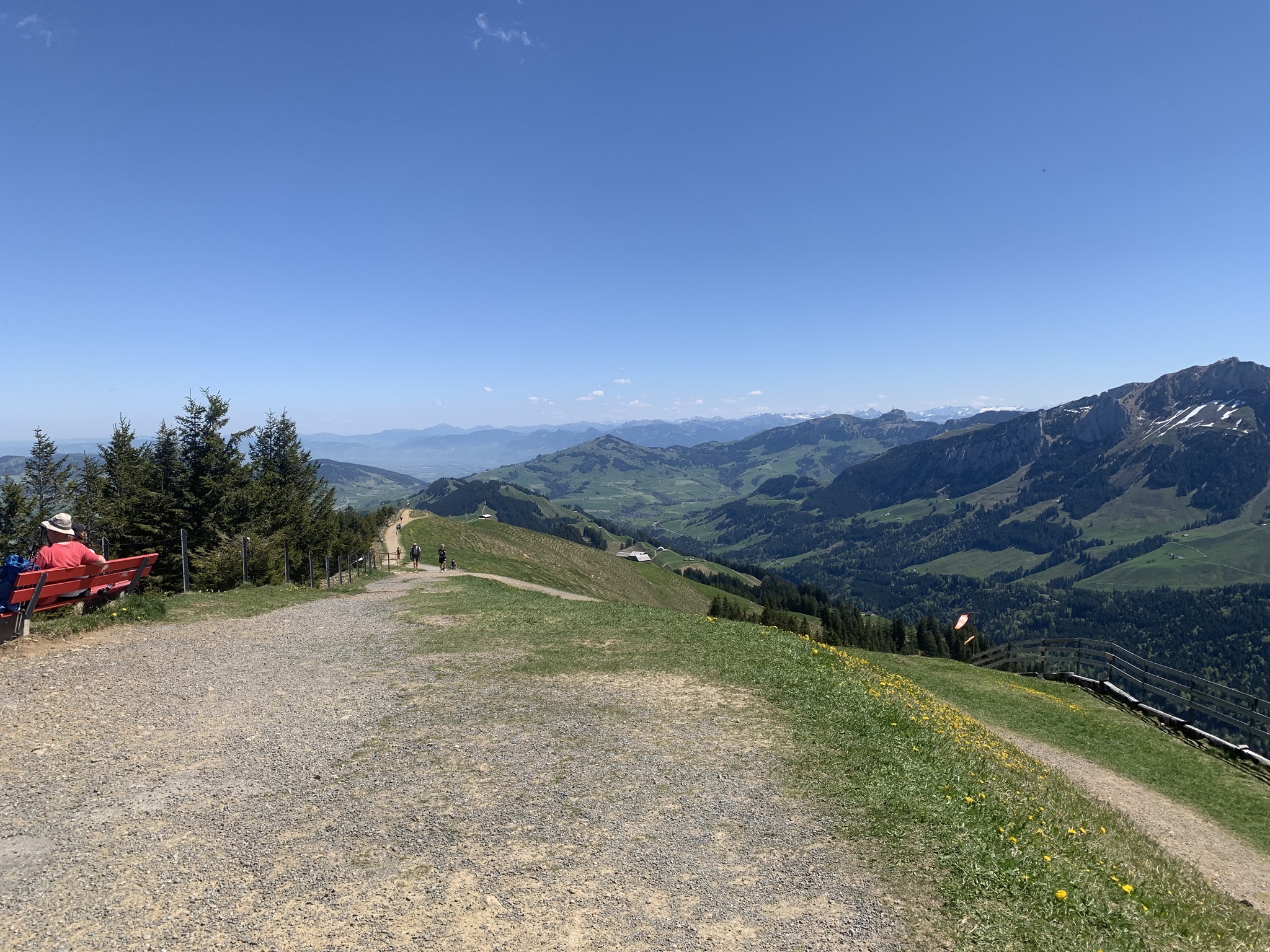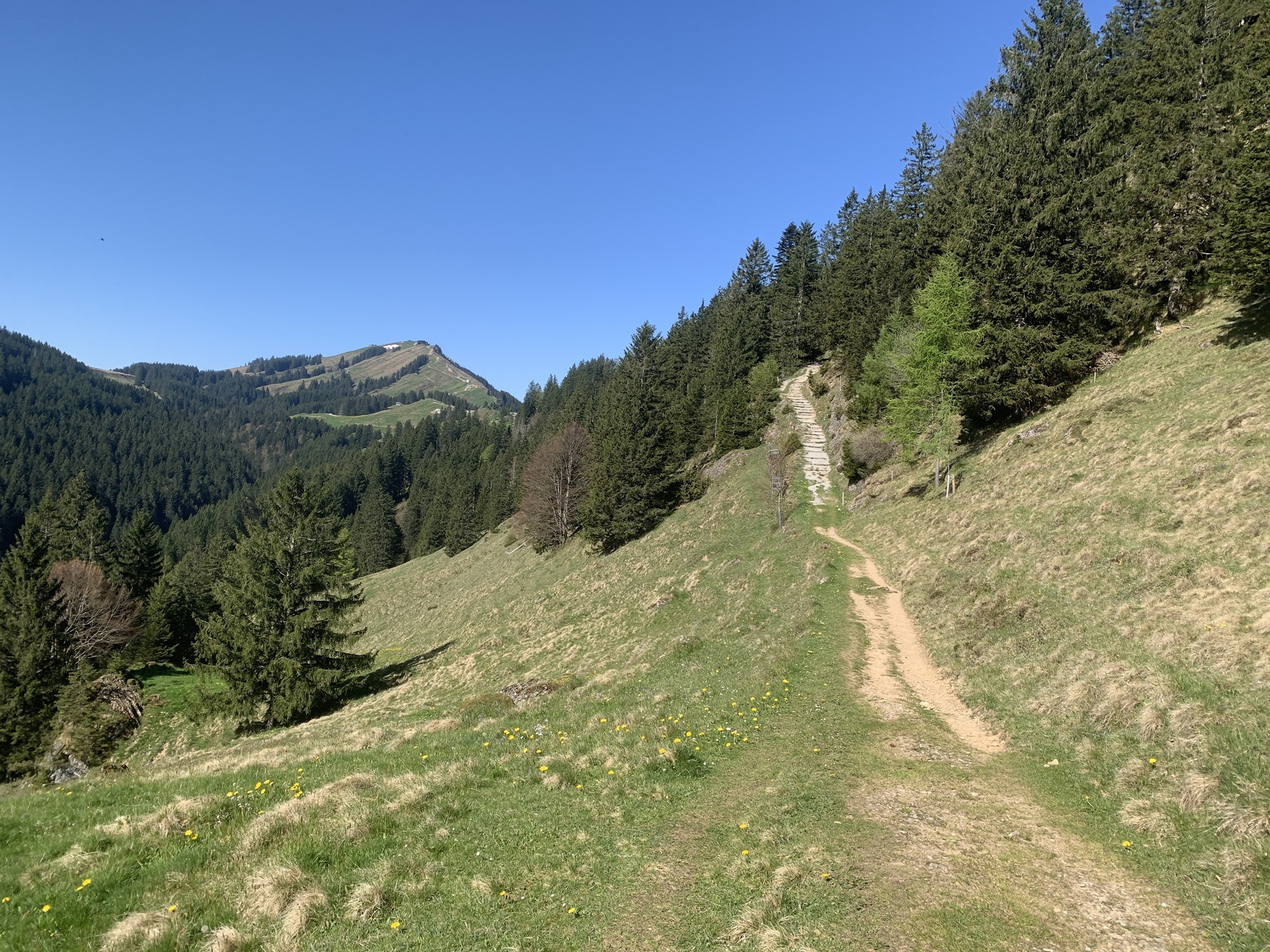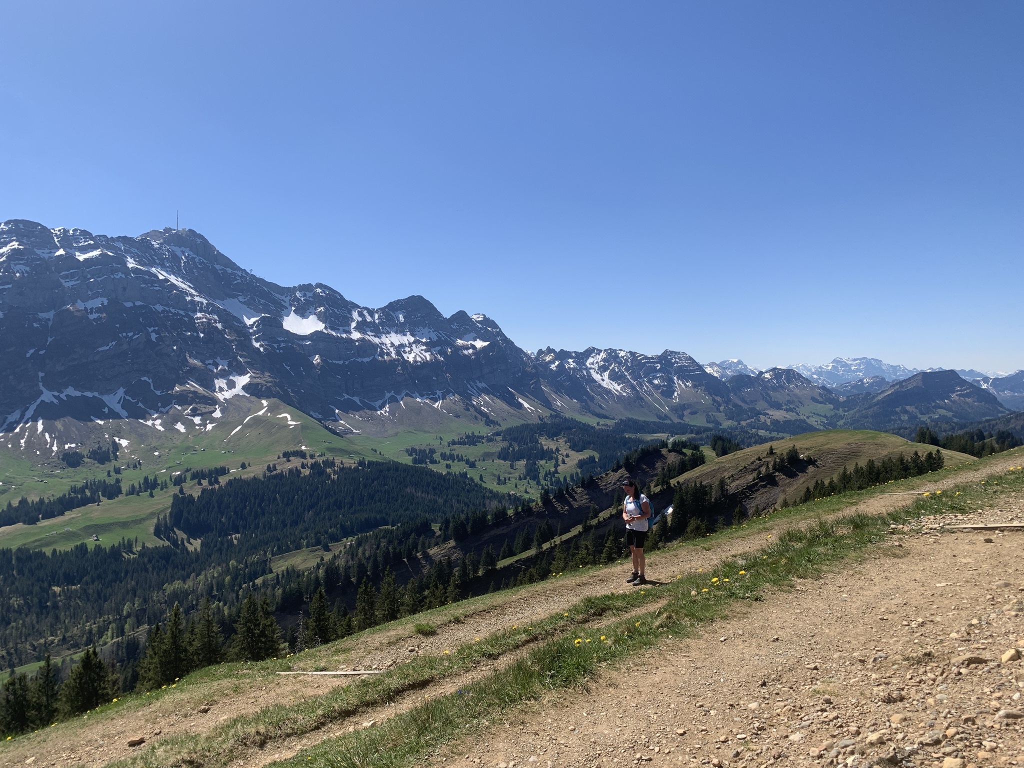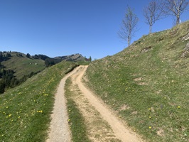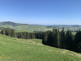 Gleich danach geht es wieder steiler hinauf, vorbei an der Kapelle St.Jakob. Zur linke Seite ist schon lange der Säntis zu sehen und rechts ein traumhafter Weitblick! Am Schluss geht es dann gemächlicher hinauf.